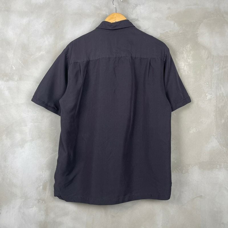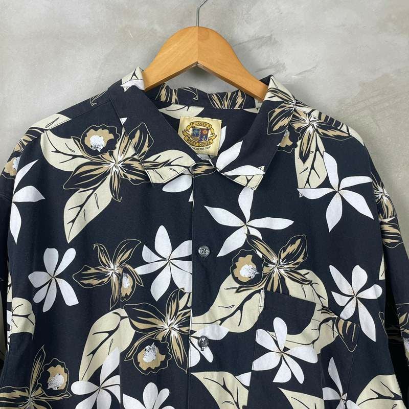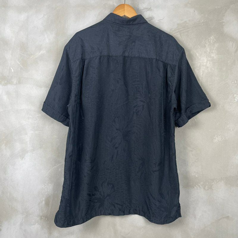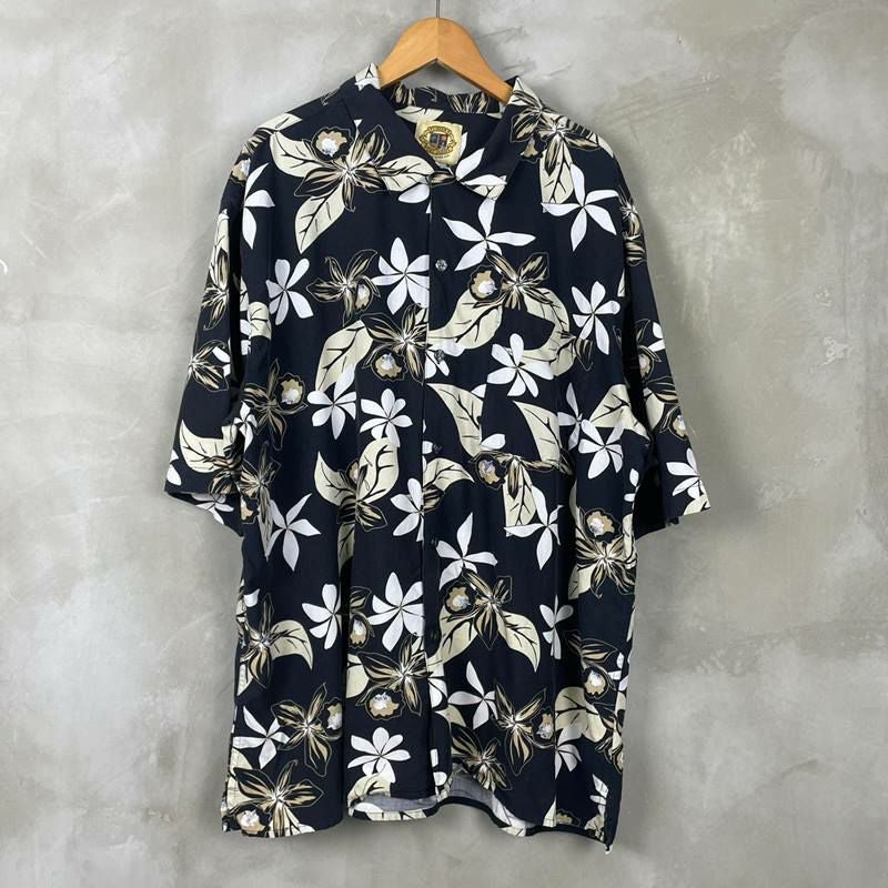 古着 半袖シルク×コットン アロハシャツ 黒ベース