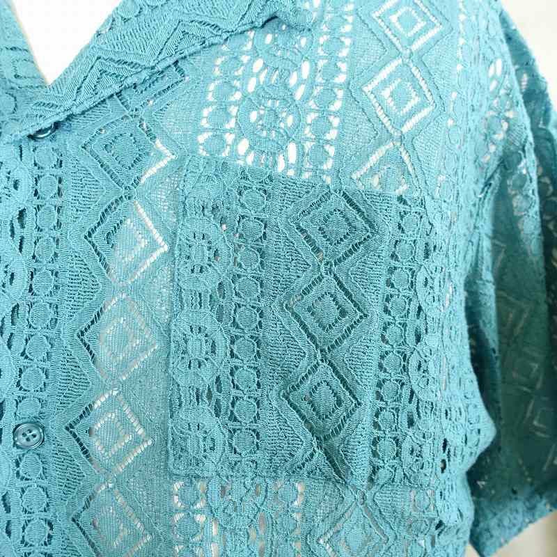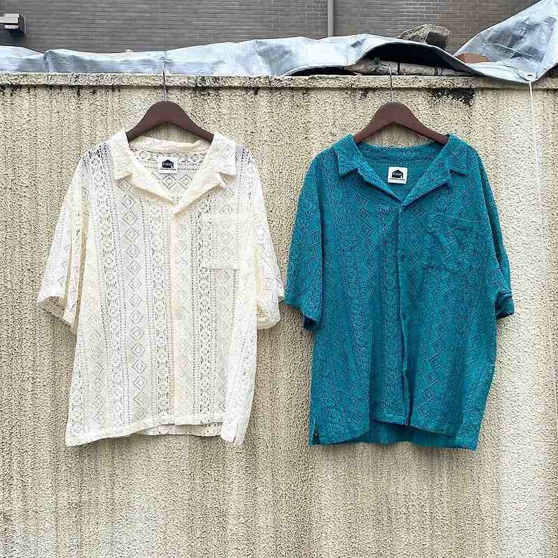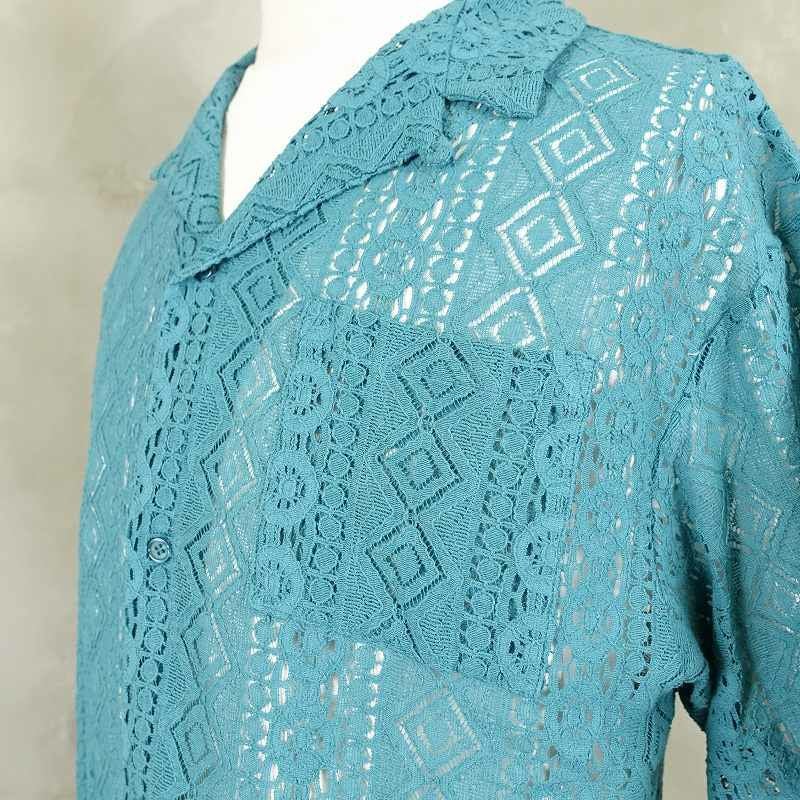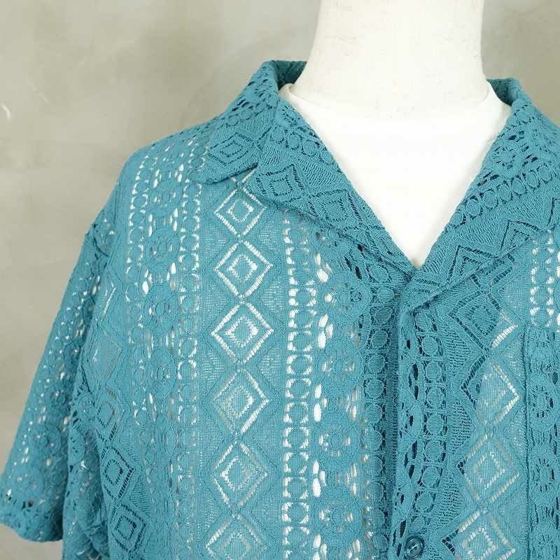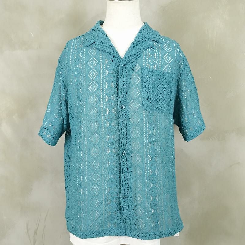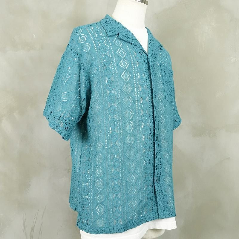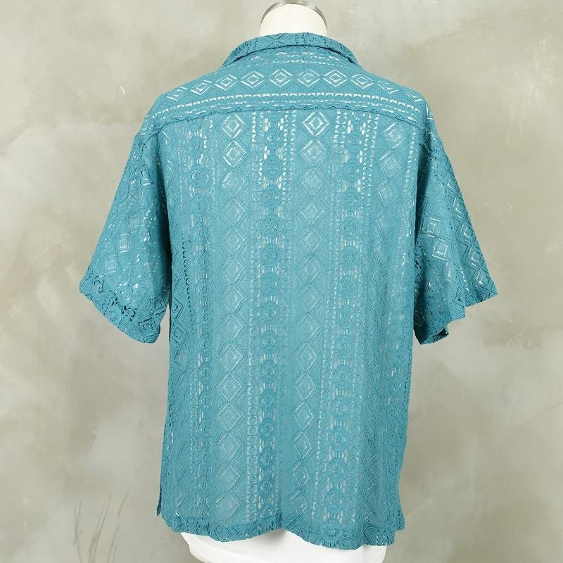 FAFATT シースルーネイティブ柄 半袖シャツ ターコイズブルー