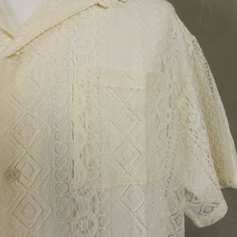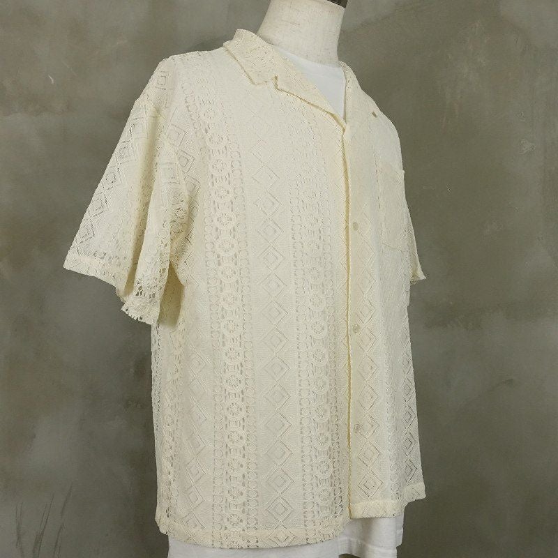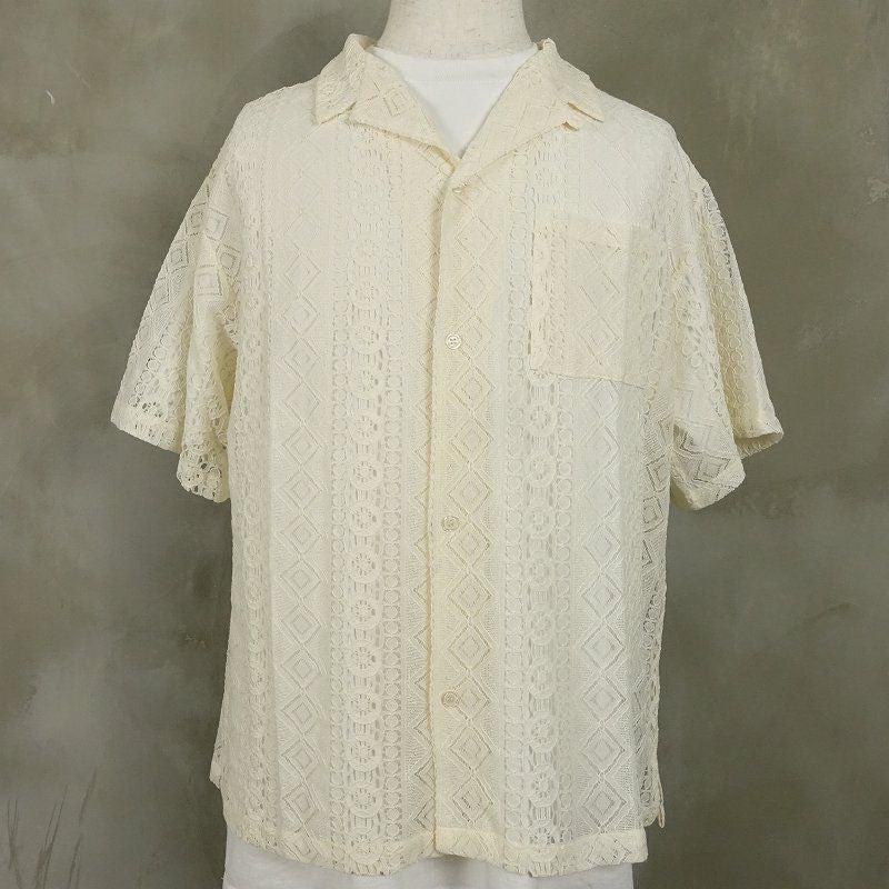 FAFATT シースルーネイティブ柄 半袖シャツ ホワイト