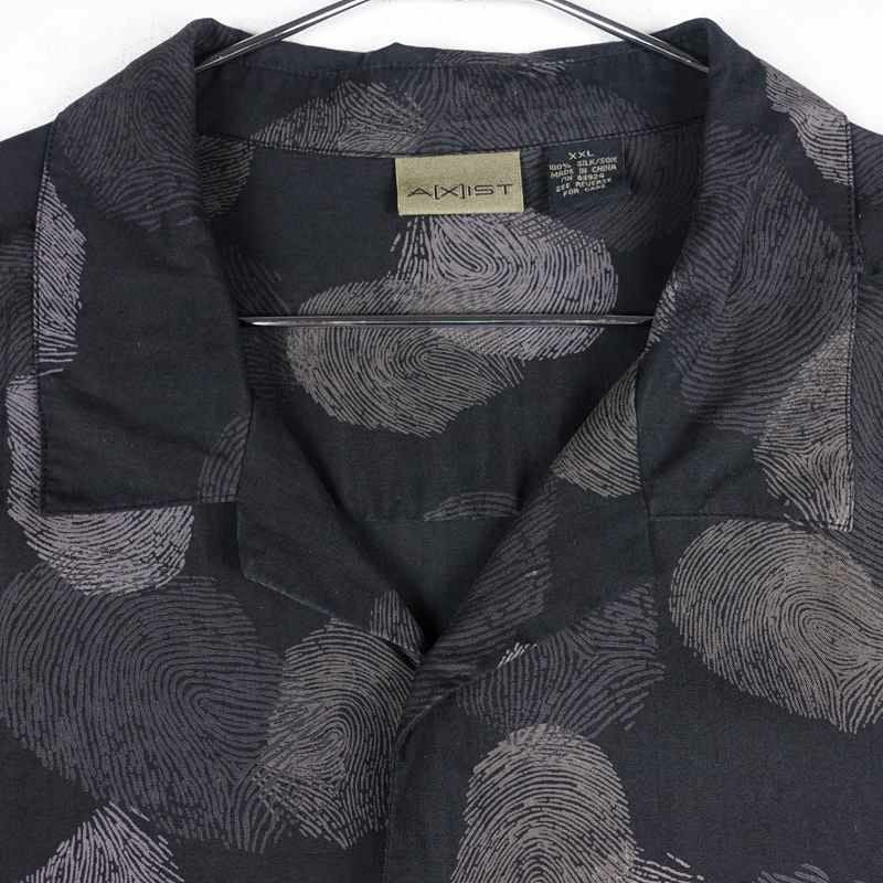 古着 指紋柄 開襟 シルク 半袖シャツ