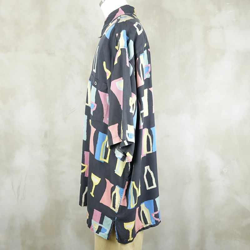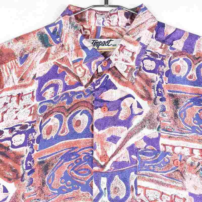 古着 開襟 パターン シルク 半袖シャツ