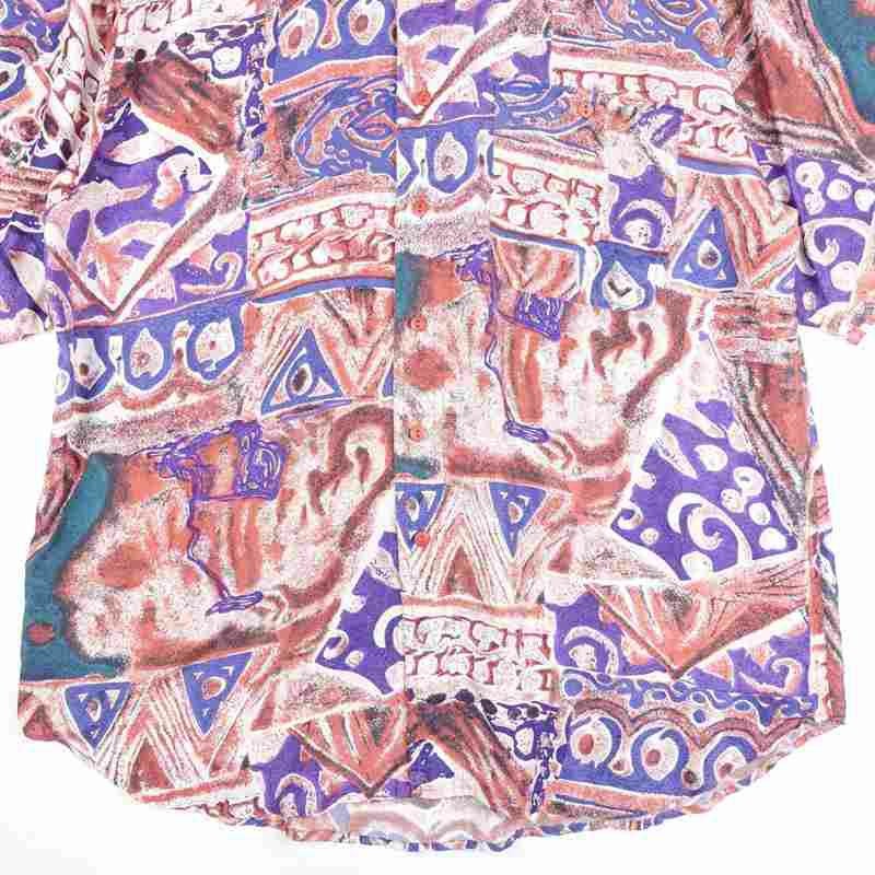 古着 アート風 シルク 半袖シャツ