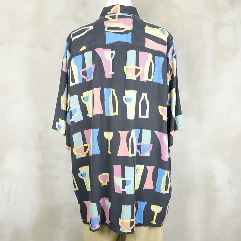 古着 食器 モチーフ シルク 半袖シャツ