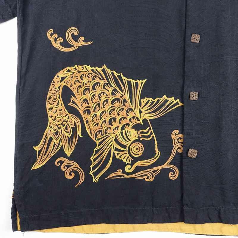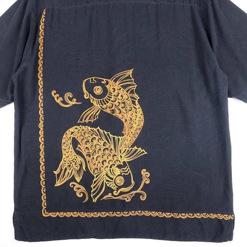 古着 フィッシュ モチーフ 開襟 アロハシャツ