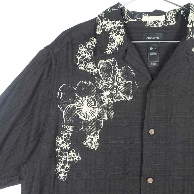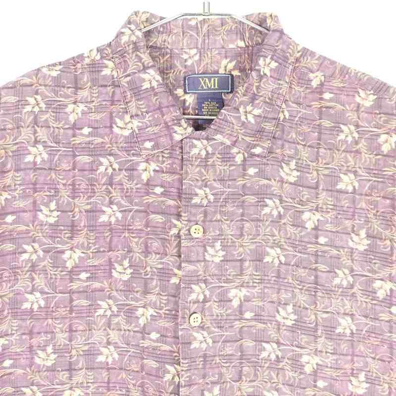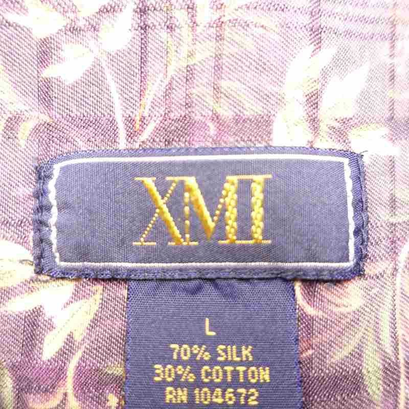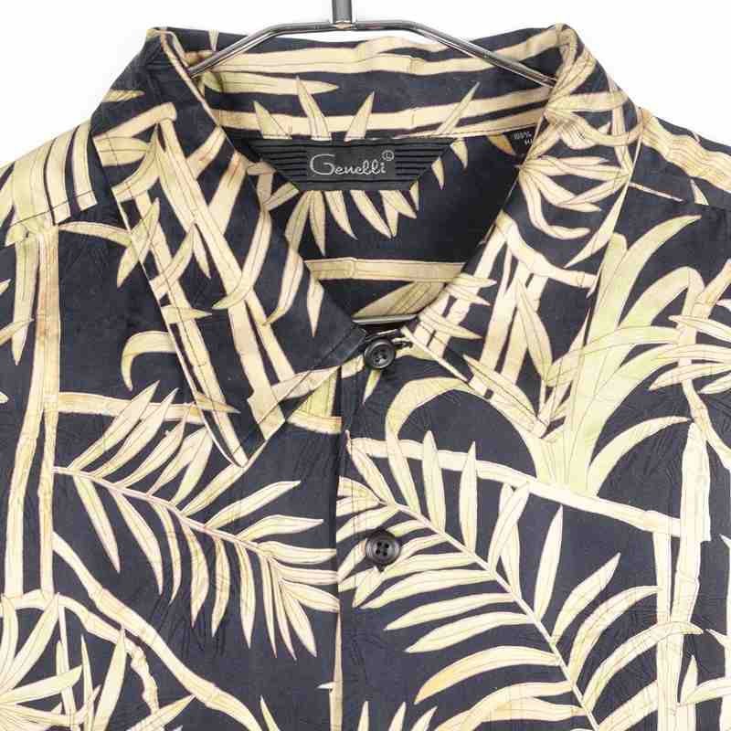 古着 植物モチーフ シルク 半袖シャツ