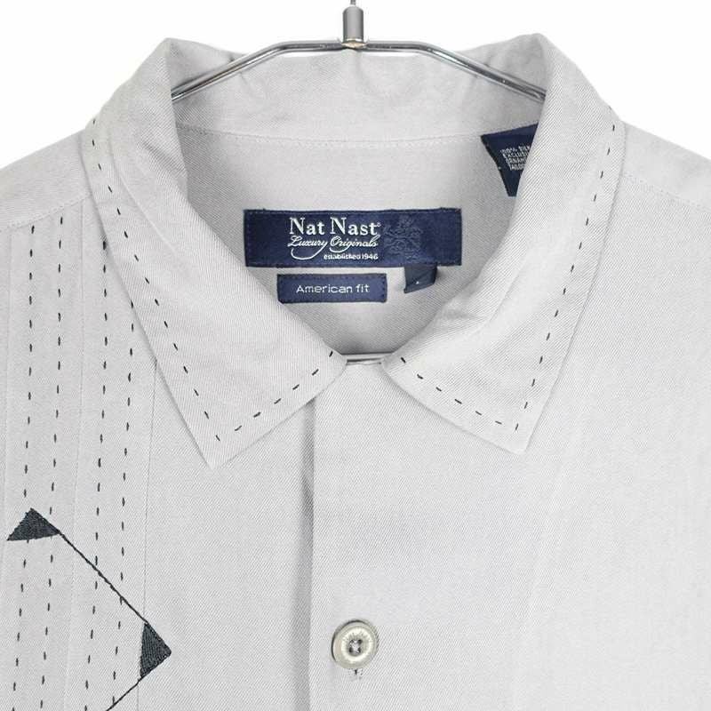 古着 開襟 ステッチ シルク 半袖シャツ