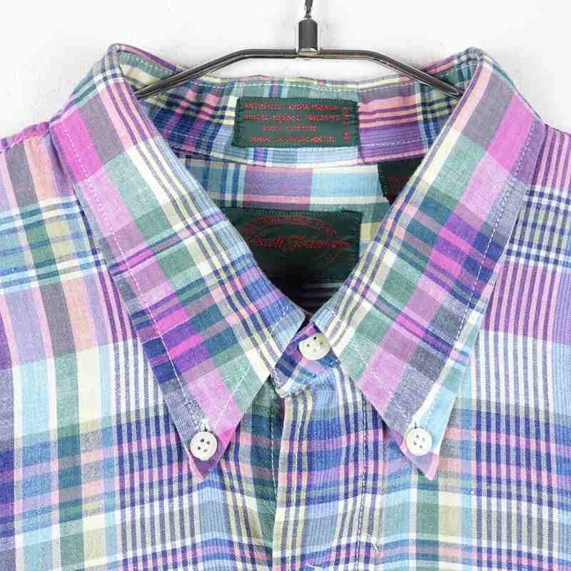 古着 EddieBauer リネン チェック ボックスシャツ