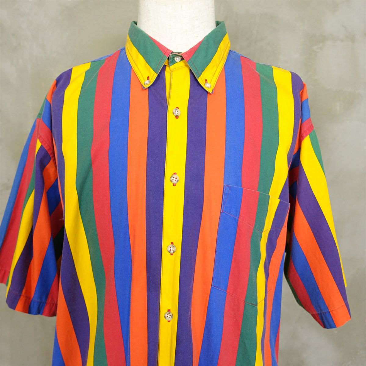 古着 マルチカラーストライプ 半袖シャツ