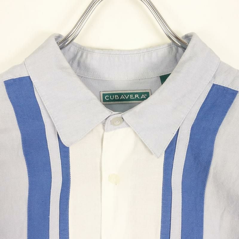 古着 CUBAVERA ジャガード ライン入り 半袖シャツ