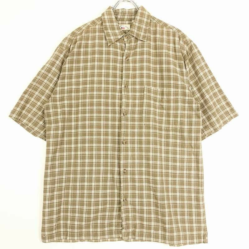 古着 IZOD ボックス チェック アースカラー 半袖シャツ