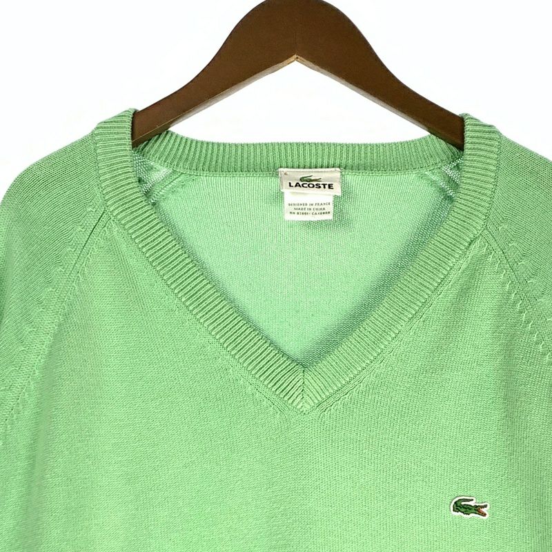 古着 LACOSTE ワンポイント Vネックニット