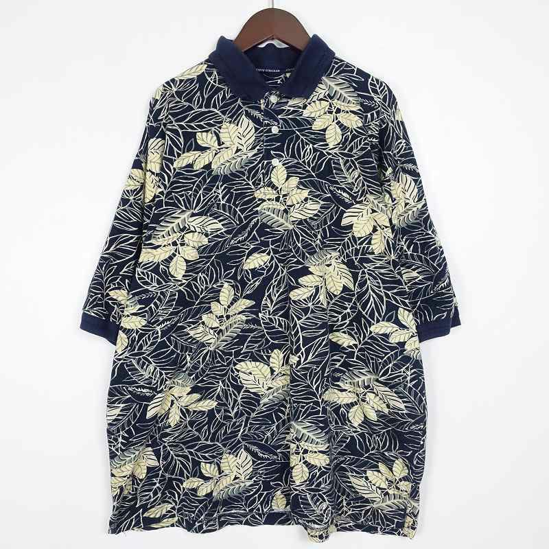 古着 リーフモチーフ 総柄 半袖ポロシャツ