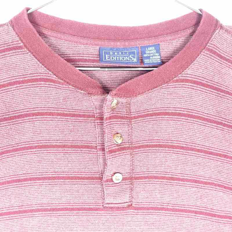 古着 ビッグサイズ ヘンリーネック ボーダーTシャツ