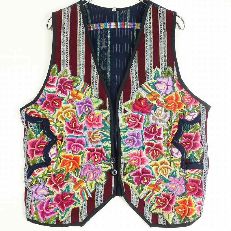 古着 総柄刺繍 エスニック ベスト