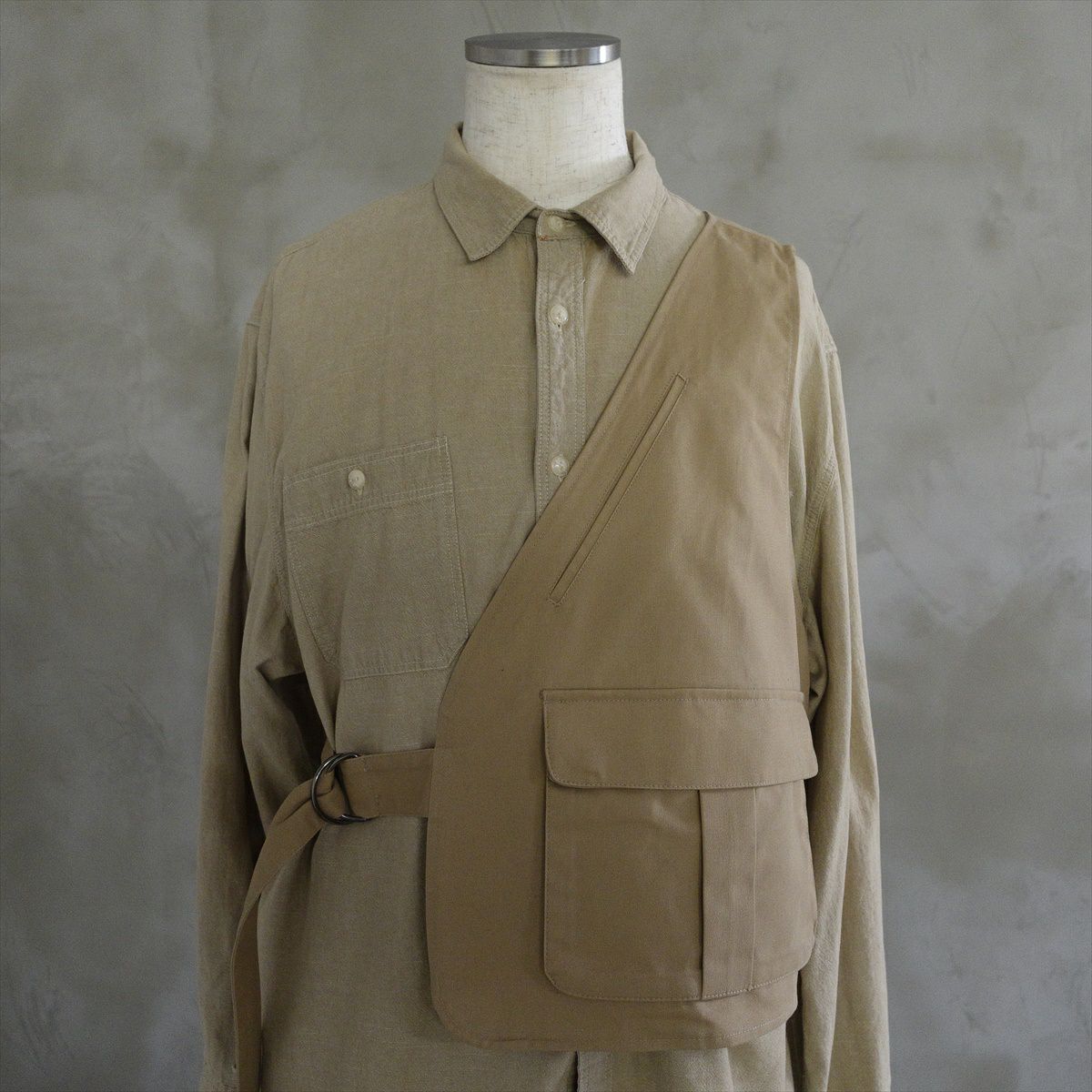 他の画像を見る Manchester Vest 販売価格 ¥ 39,380 税込 在庫切れ ARMYのトレンチコートやポケットを多用しているベストです。首周りもゆとりあるシルエットなので、幅広いレイヤードにお使いいただけます。フロントにはアウトドア要素のあるフックを配置しております。 詳細を見る お気に入りに登録する