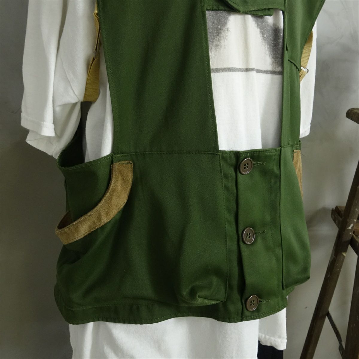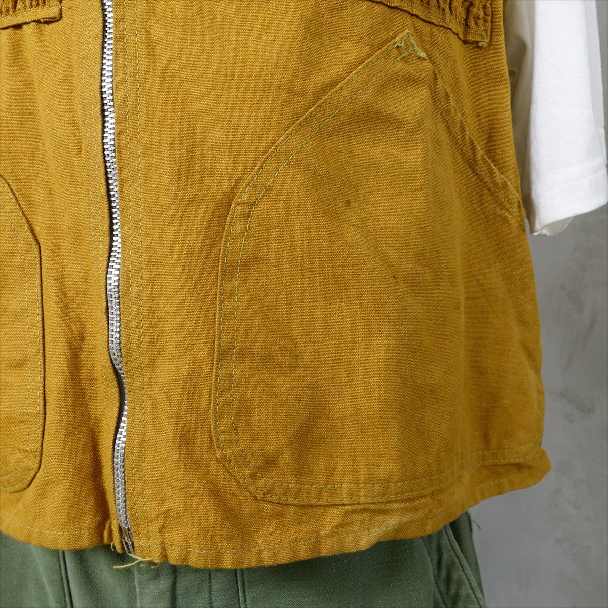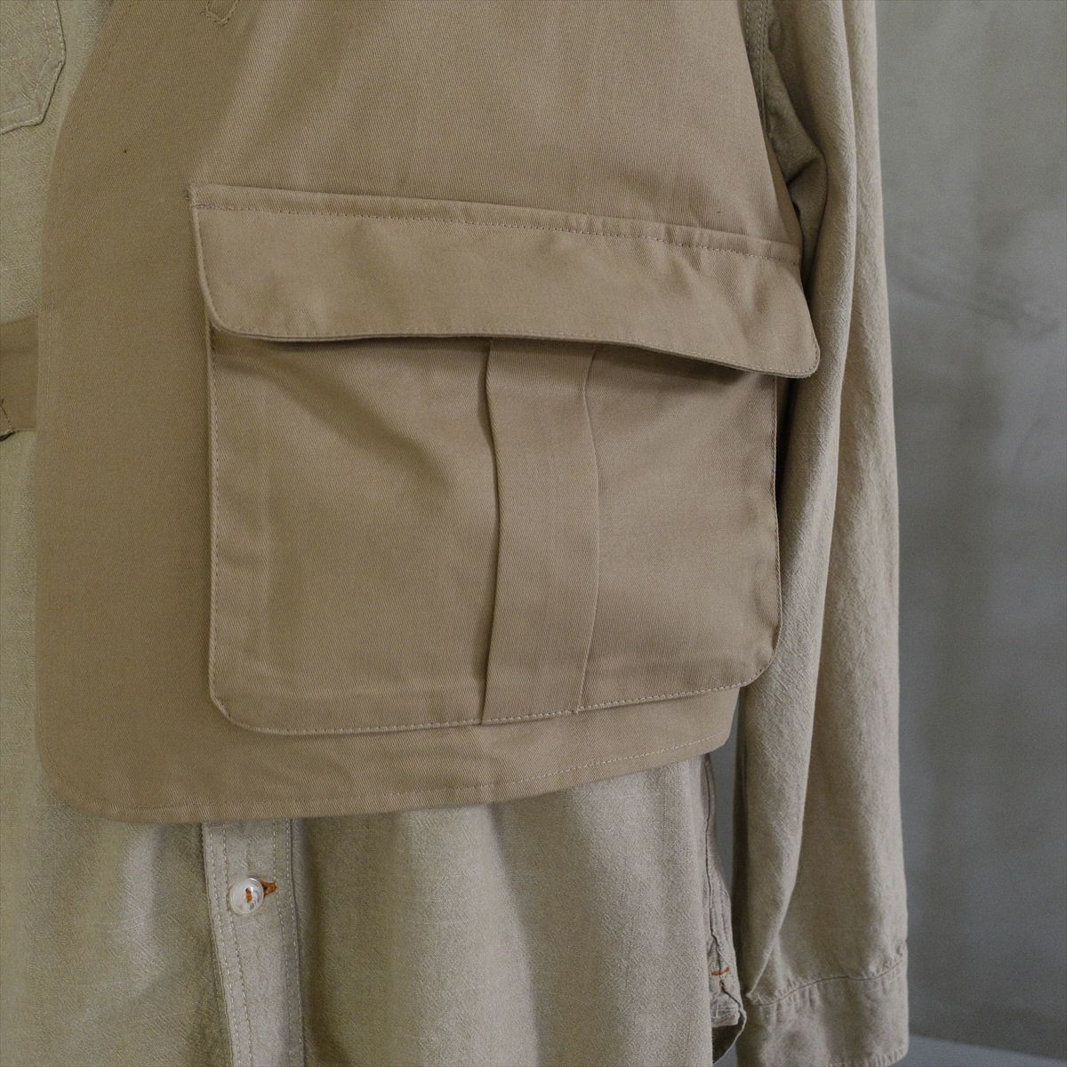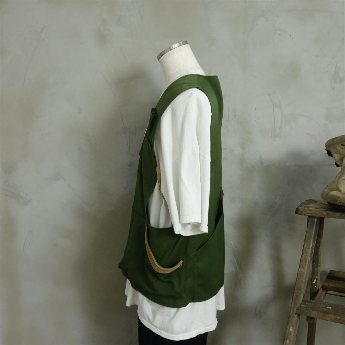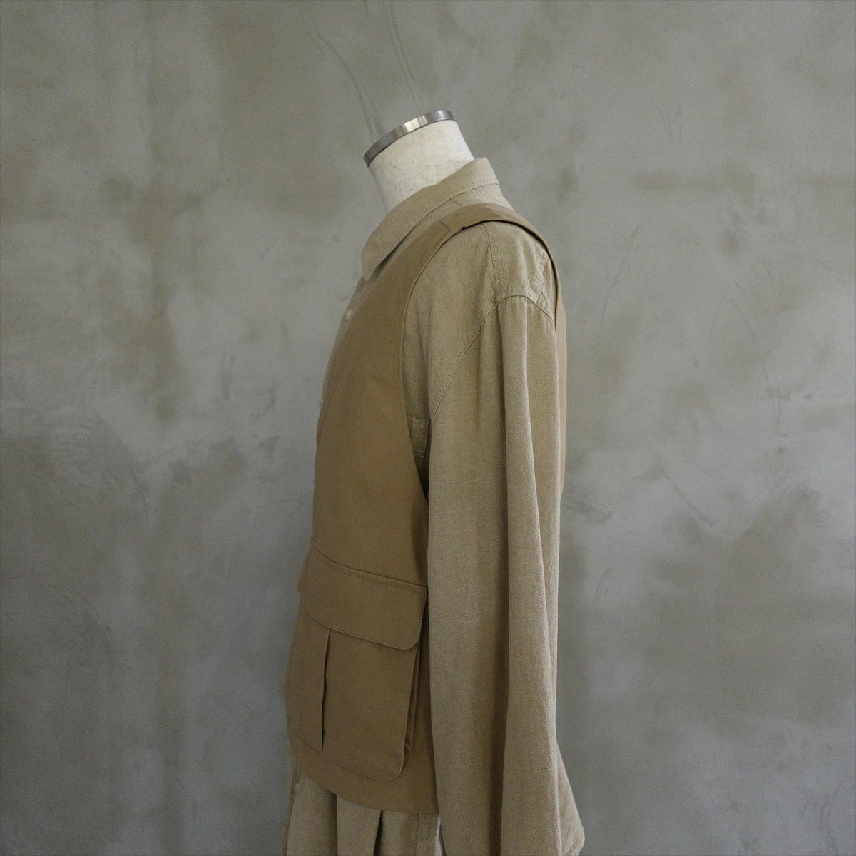 他の画像を見る Wide Range Cargo Vest 販売価格 ¥ 26,180 税込 在庫切れ ARMYカーゴパンツを素材として用いたベストです。身幅を広く設けている為レイヤードの幅が広がる1着です。ポケットから出ている紐により身幅の調整も可能となります。 詳細を見る お気に入りに登録する