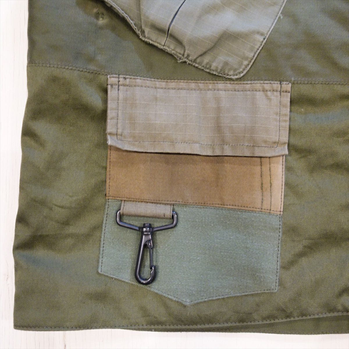 他の画像を見る MA-1 Scarf Hoodie 販売価格 ¥ 27,280 税込 在庫切れ ARMYのMA-1とVintageのスカーフを素材として製作しております。リバーシブルとなっており、コーディネートに合わせて使い方が選べます。フード部分はアクセントとしてMA-1のフロントポケットが付いております。 詳細を見る お気に入りに登録する