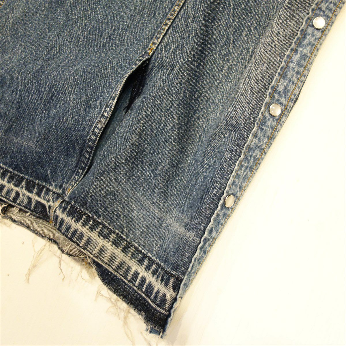 他の画像を見る Loose Threads Vest BLU 販売価格 ¥ 26,180 税込 在庫切れ Levi'sのデニムパンツを素材として製作しております。緩やかなVネックとなり、インナーを選ばない1着です。サイドはデニムシャツのフロントボタンを配置しており、ボタンを開ける事でシルエット調整が可能です。 詳細を見る お気に入りに登録する