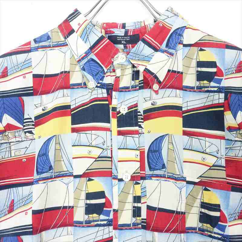 古着 NAUTICA ヨット モチーフ柄 半袖シャツ