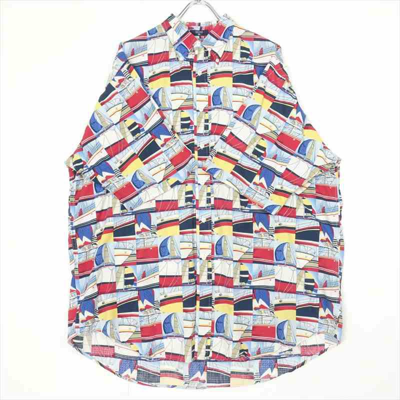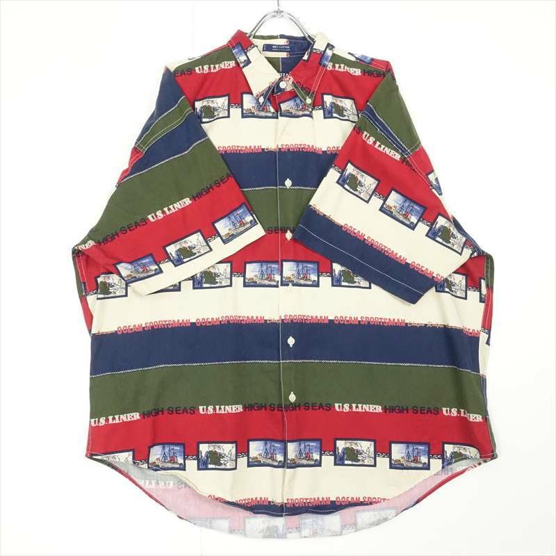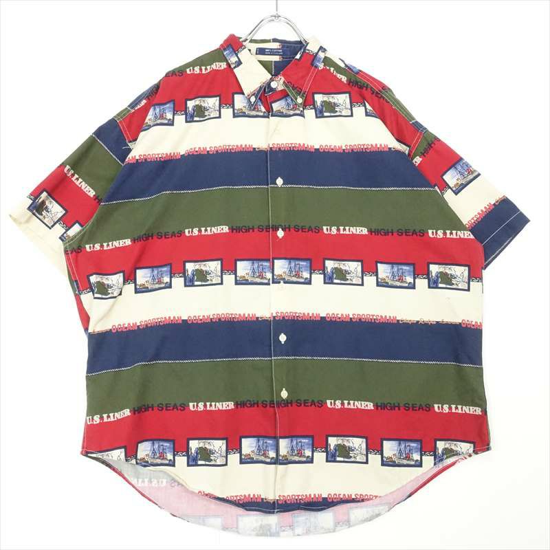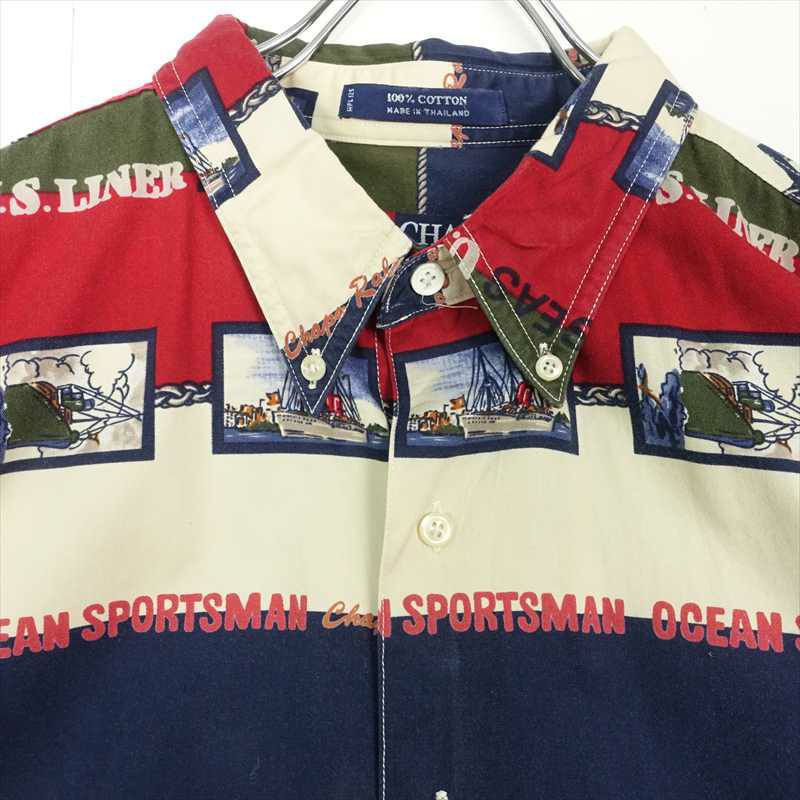 古着 CHAPS 船 モチーフ 総柄 半袖シャツ