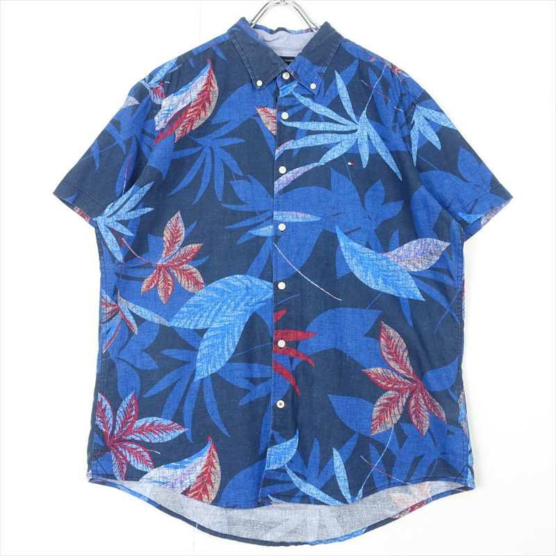 古着 TOMMYHILFIGER リネン リーフパターン 半袖シャツ