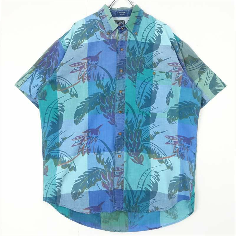 古着 CHAPS 総柄 ボタンダウン 半袖シャツ