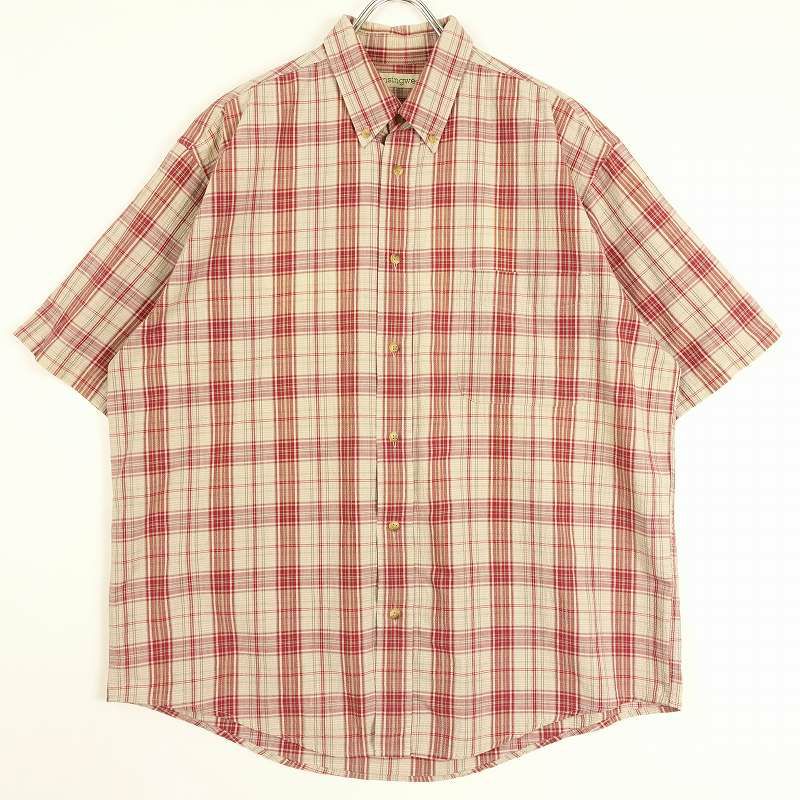 古着 IZOD ボックス チェック アースカラー 半袖シャツ