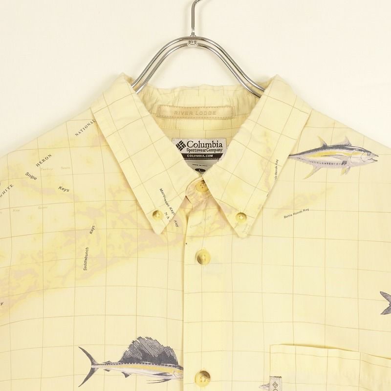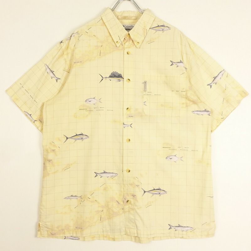 古着 columbia フィッシュ 魚 モチーフ 半袖シャツ