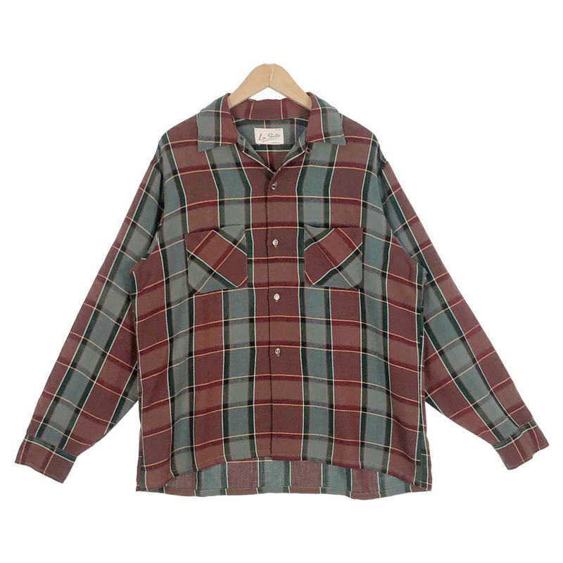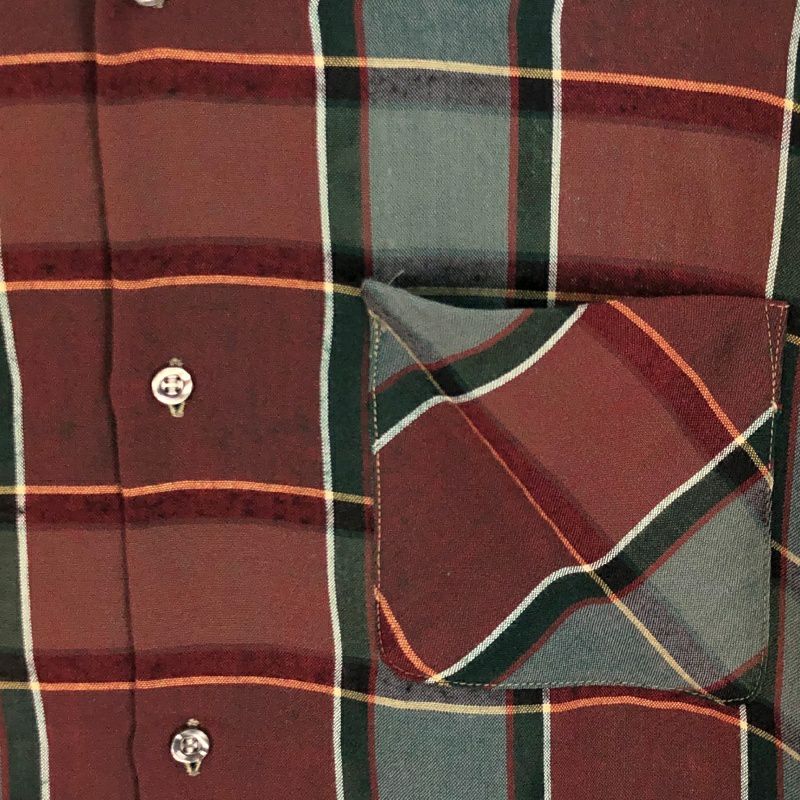 古着 60s vintage オープンカラー チェック レーヨン 長袖シャツ
