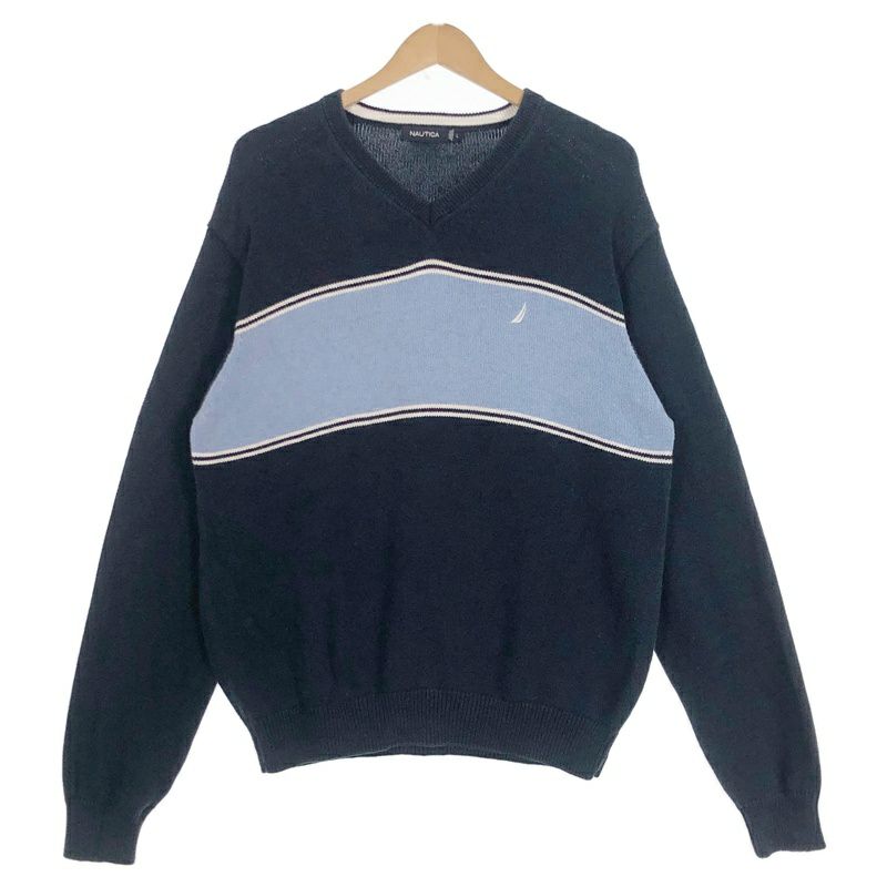 古着 NAUTICA Vネック ラインニット