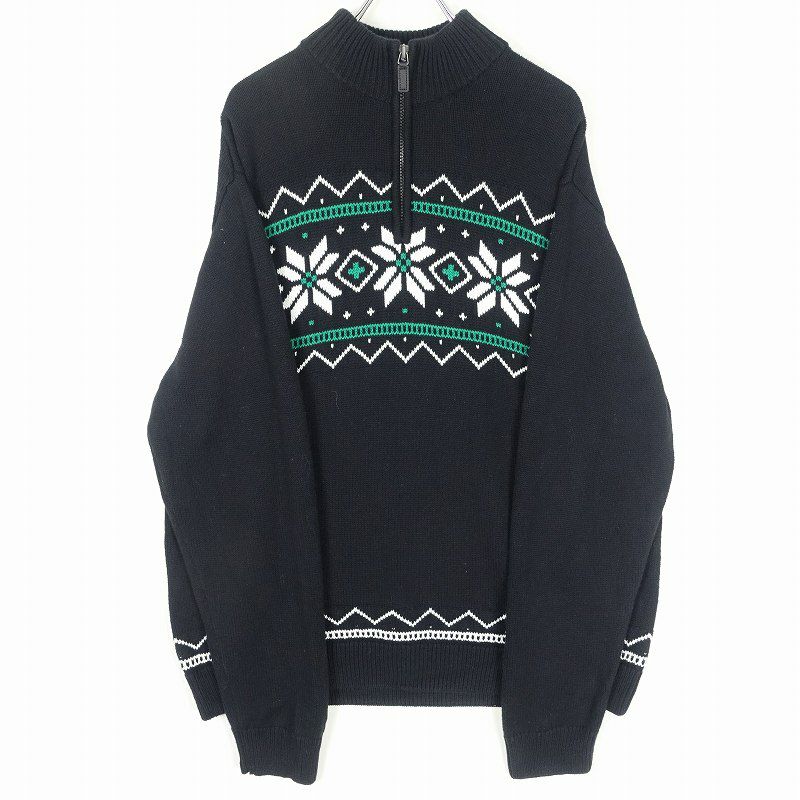 古着 CHAPS 雪柄 ハーフジップニット