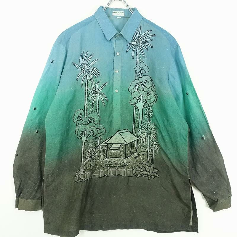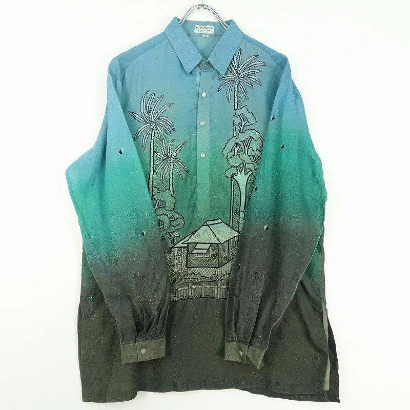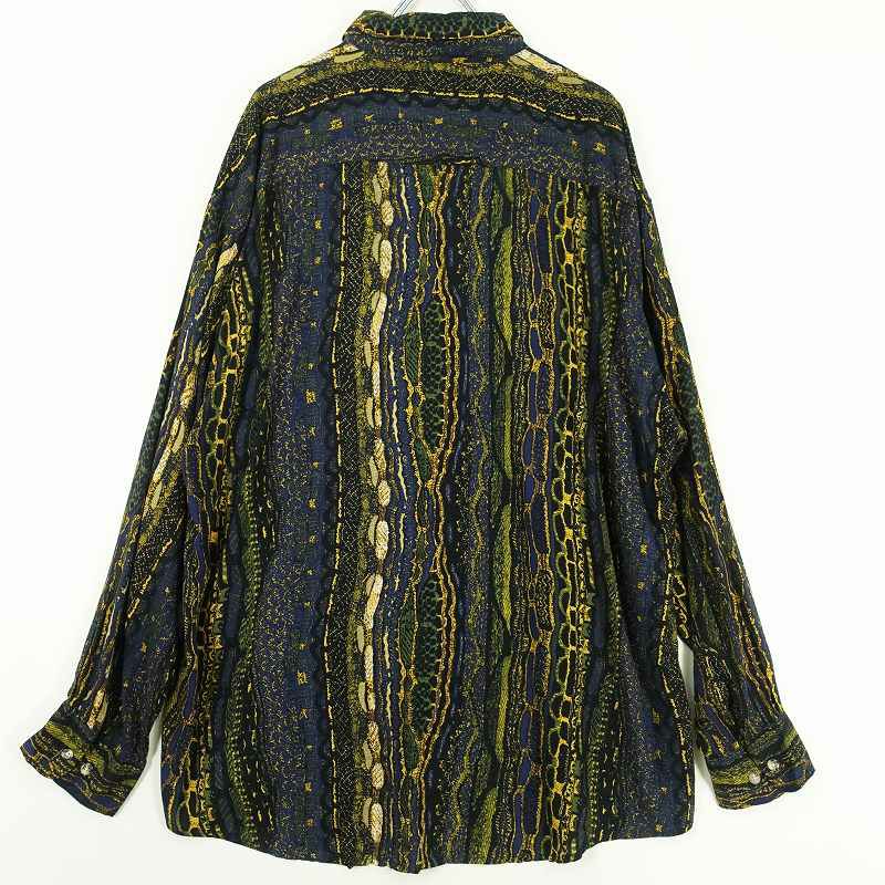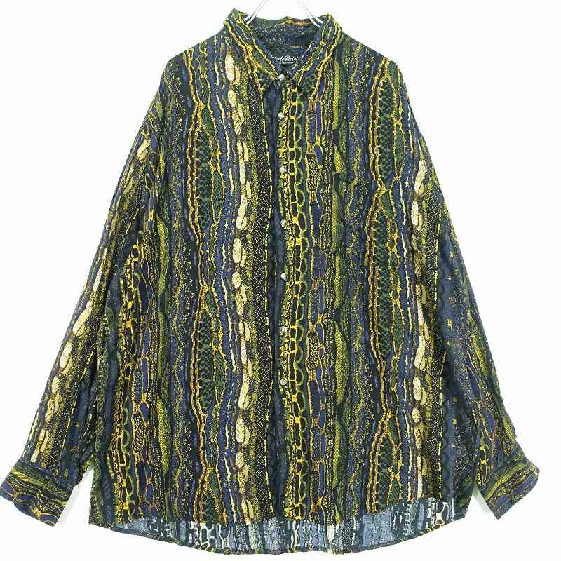 古着 90s レーヨン 総柄 長袖シャツ