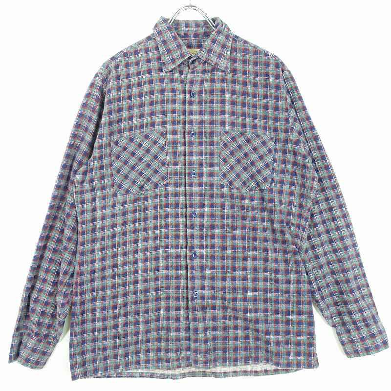 古着 チェック プリントネル 長袖シャツ