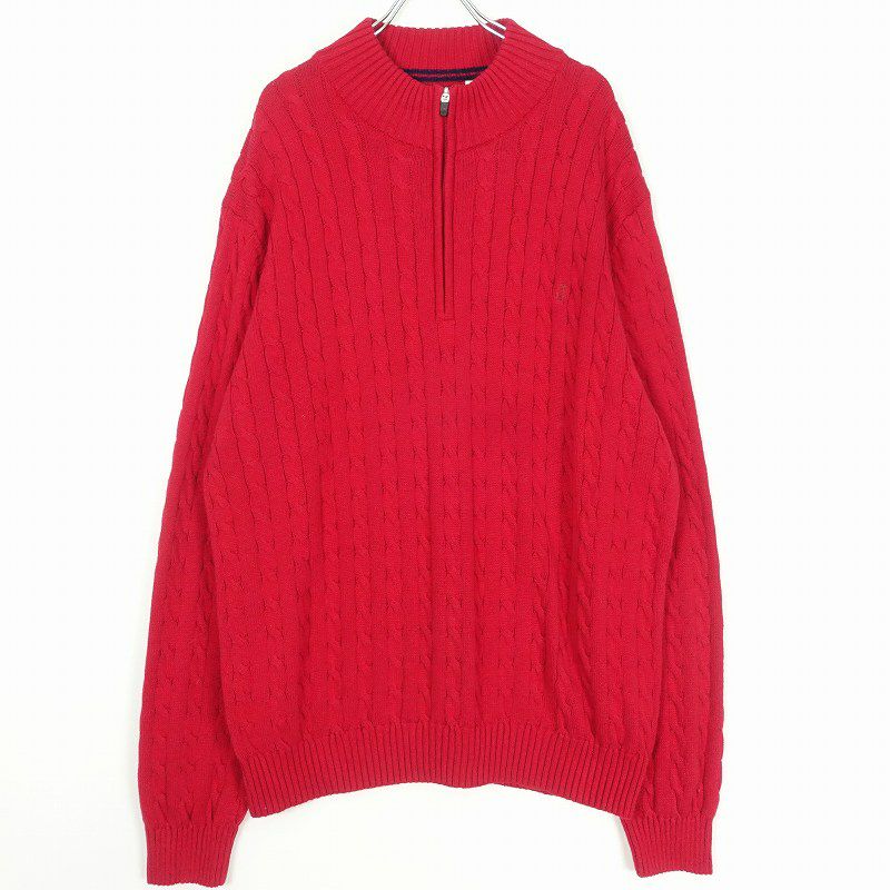 古着 IZOD 無地 ハーフジップ プルオーバーニット