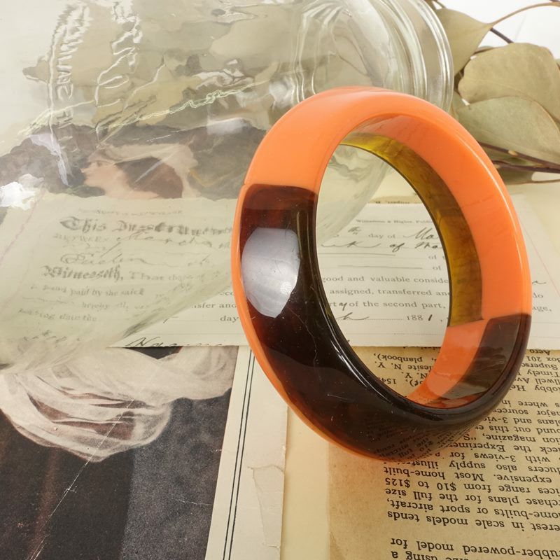 べっ甲 デザイン バングル オレンジ