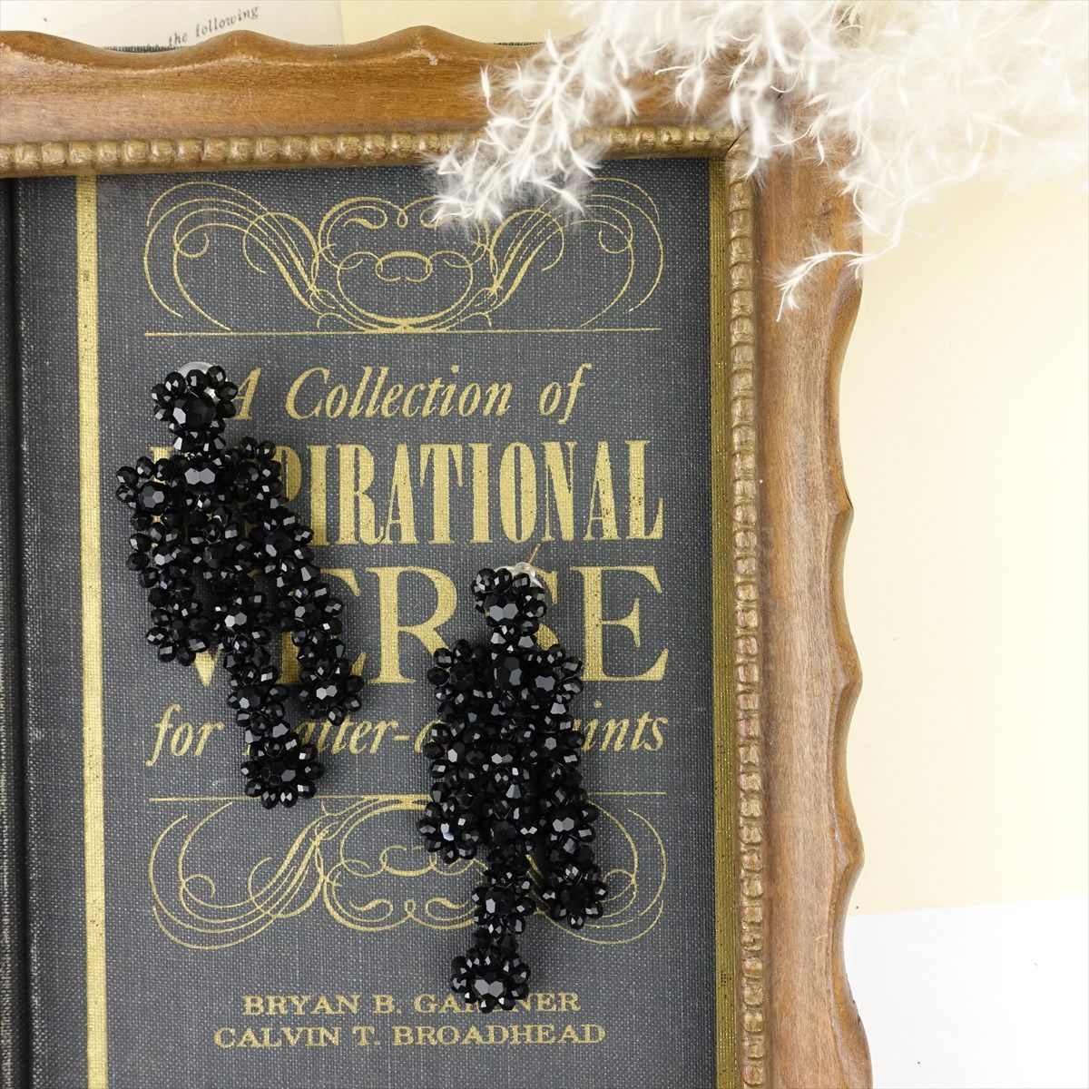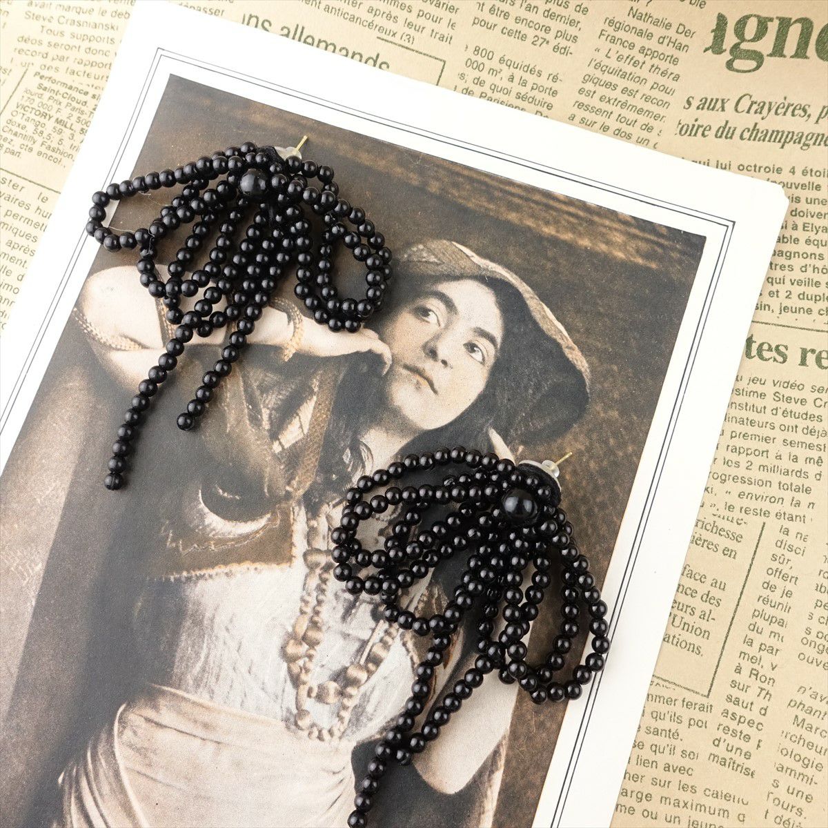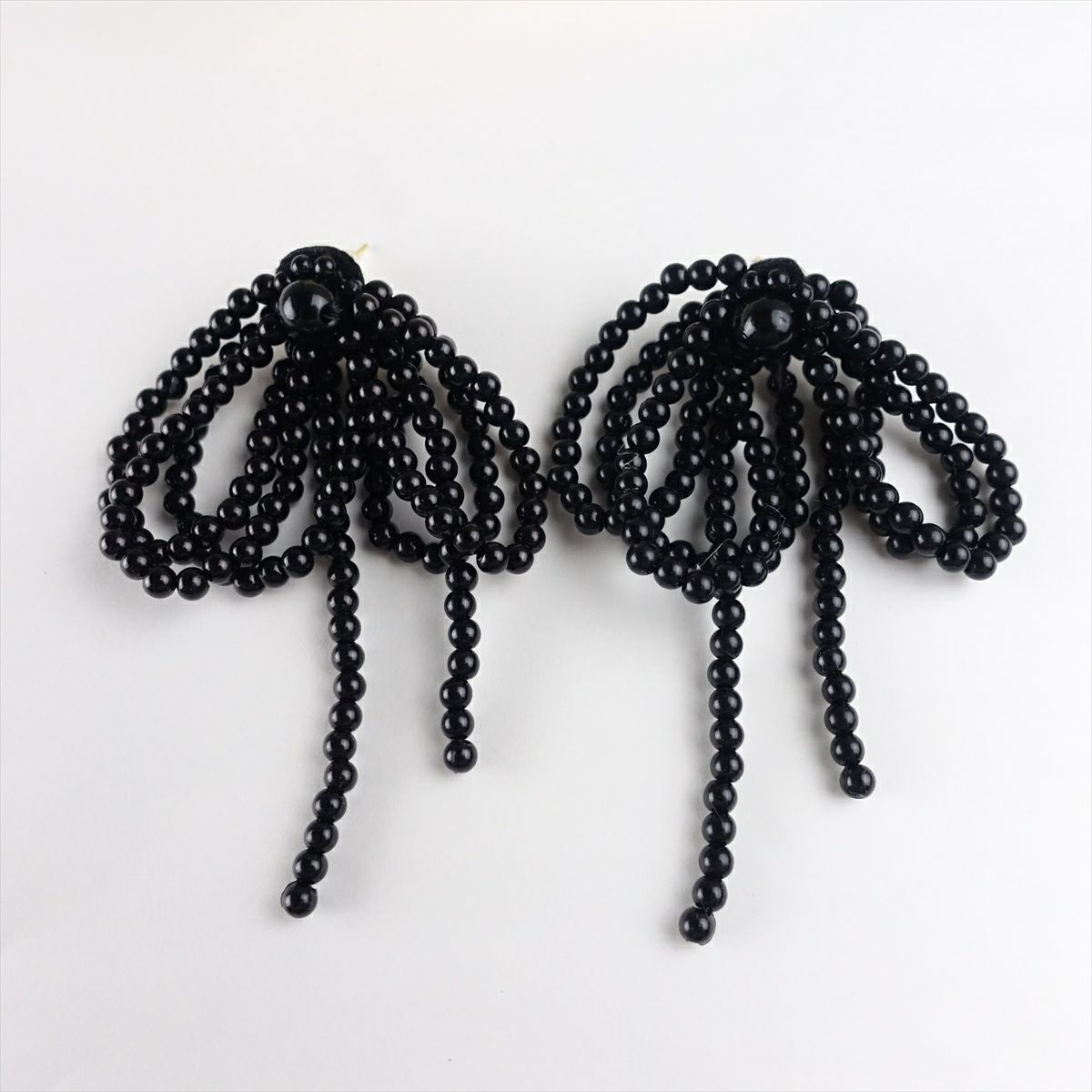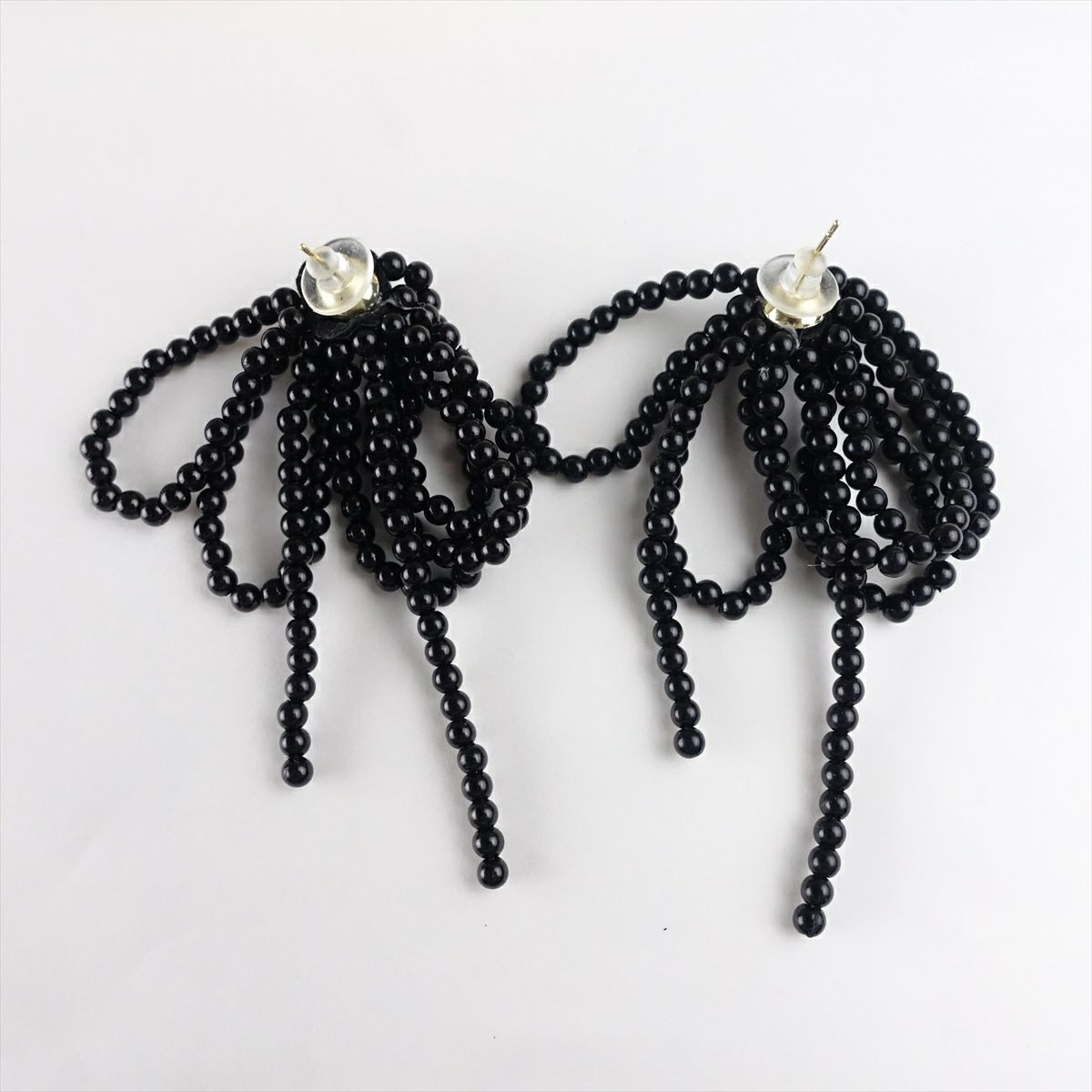 リボンモチーフ ビーズピアス ブラック