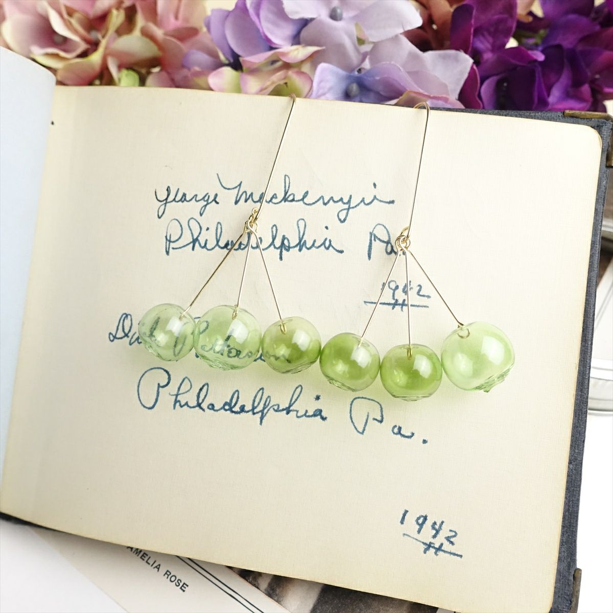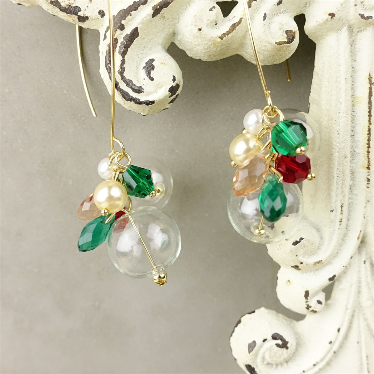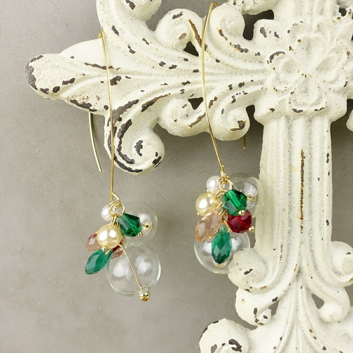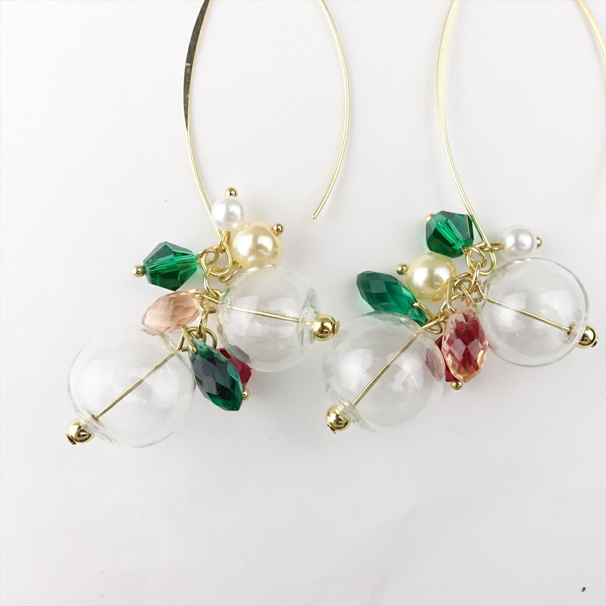 クリアボールデザインフックピアス グリーン