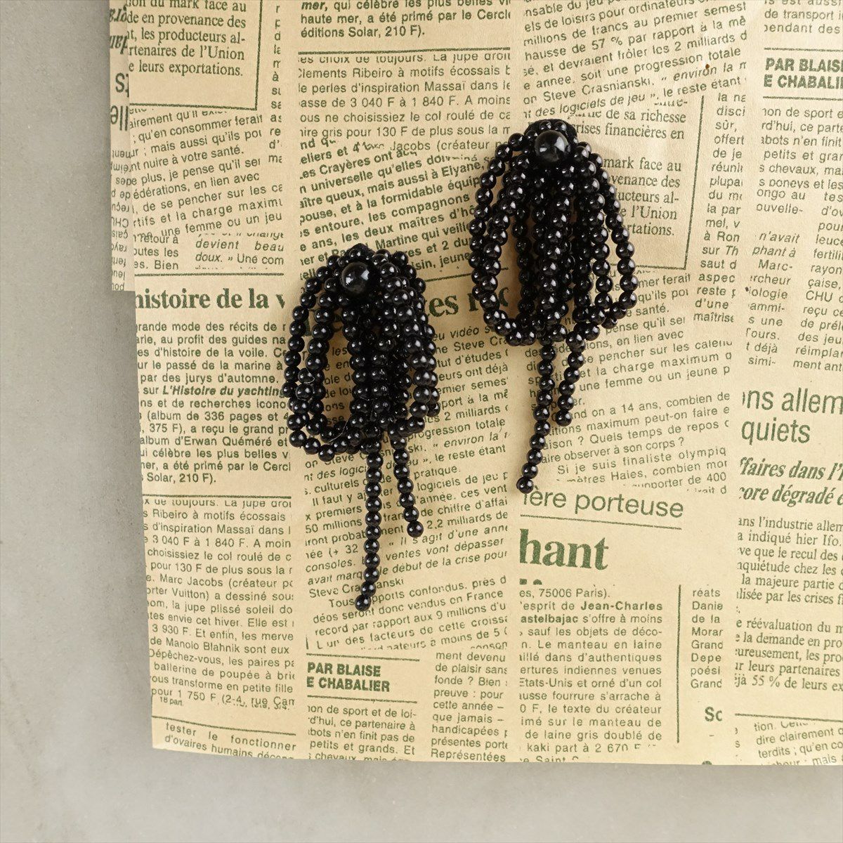 アシンメトリー ビーズピアス ブラック