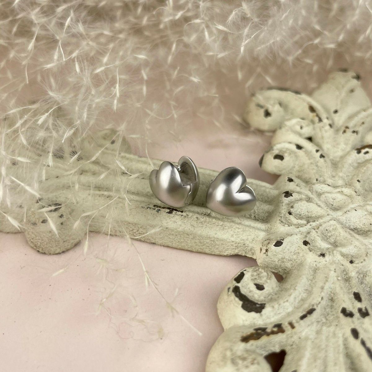 ぷっくりハートピアス マットシルバー