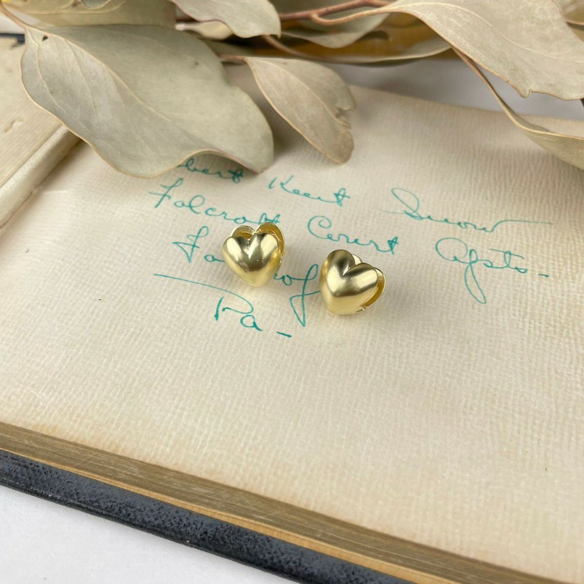 ぷっくりハートピアス マットゴールド