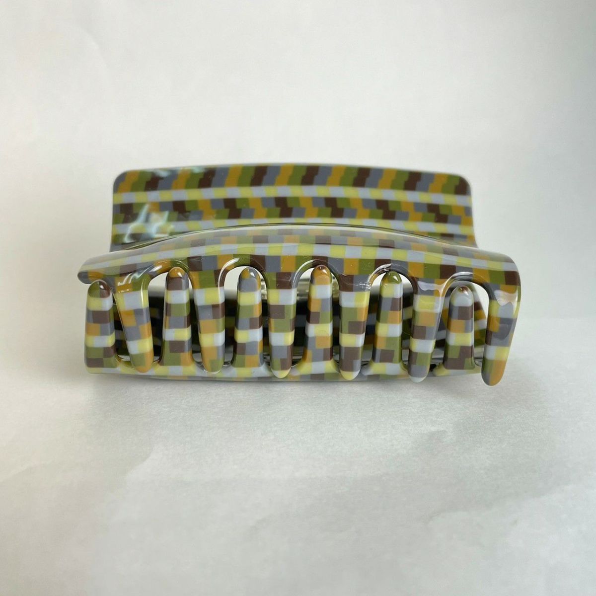 マーブル デザイン ヘアクリップ カーキ