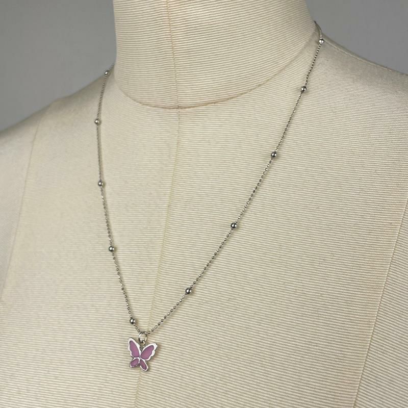 バタフライ デザイン ネックレス シルバー×パープル