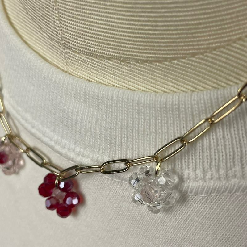 フラワー ビーズ デザイン ネックレス ピンク