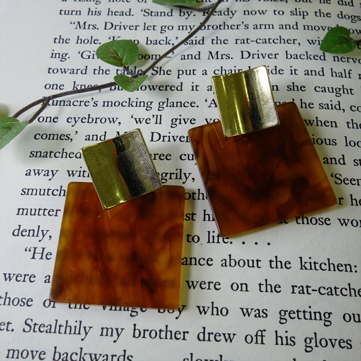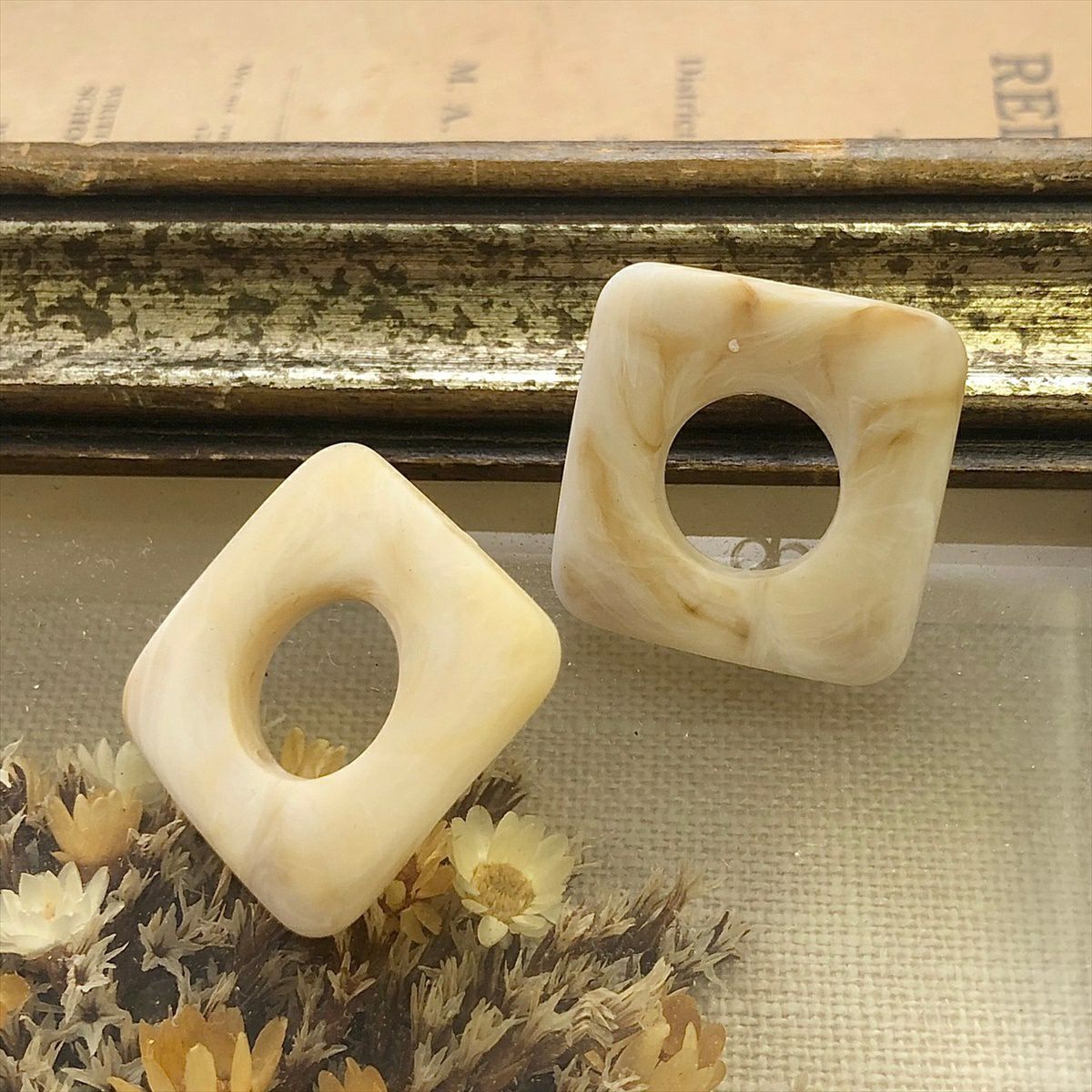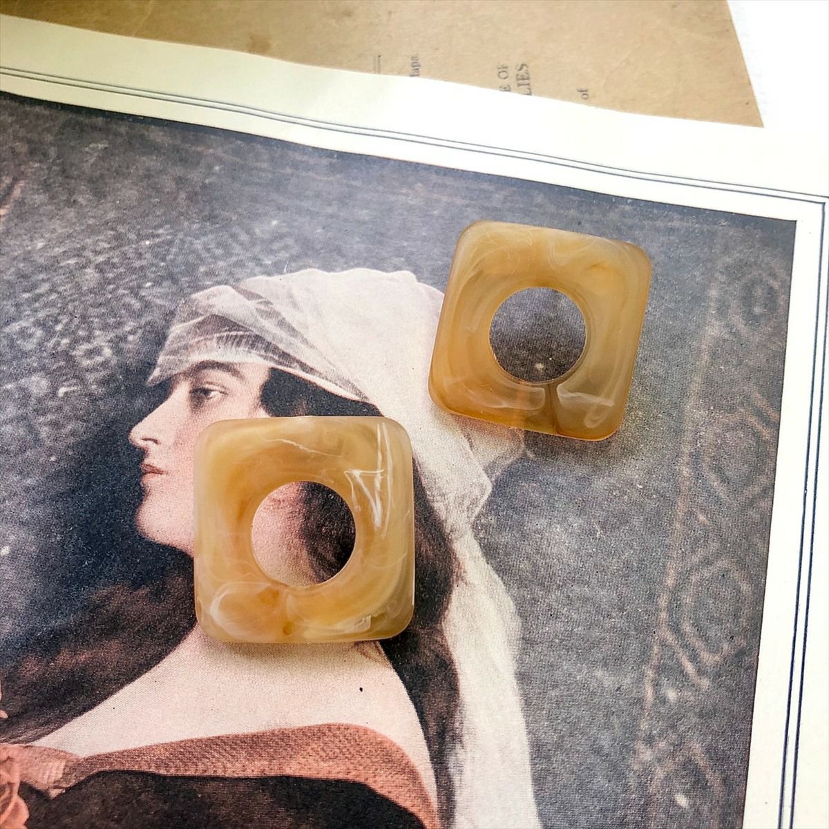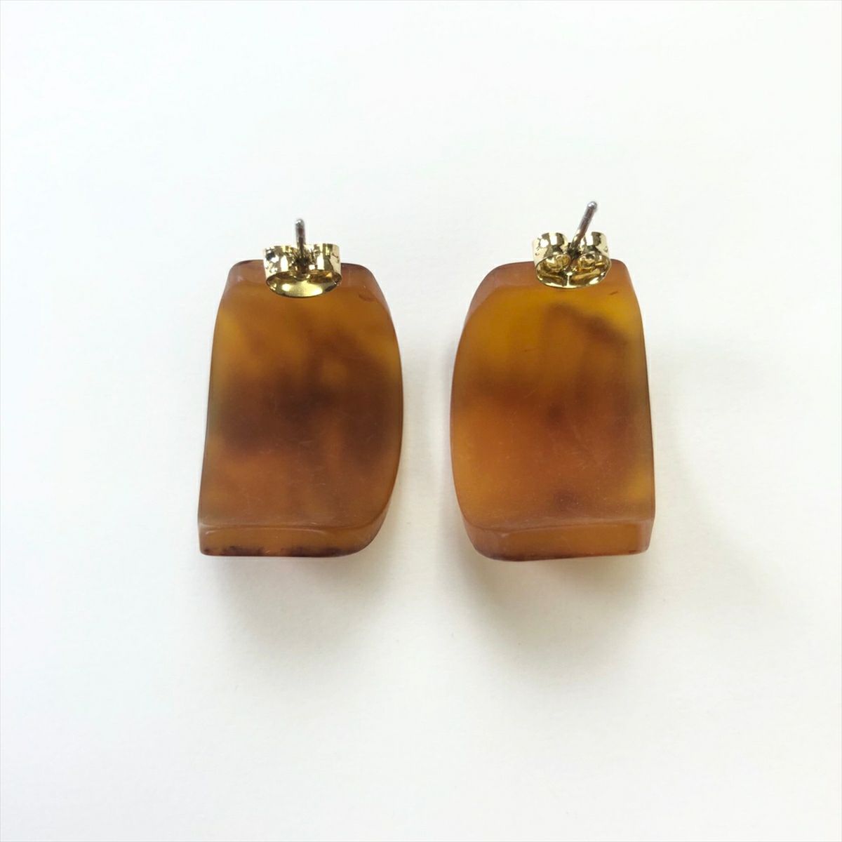 レジン ゴールド べっ甲 スクエア キャッチピアス