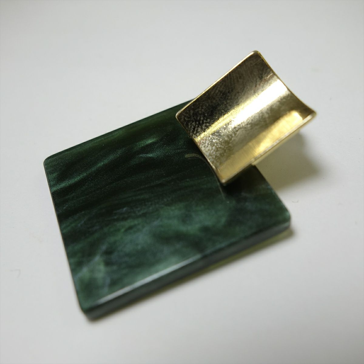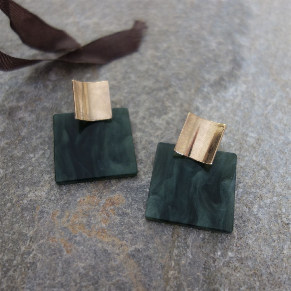 レジン スクエア キャッチピアス ゴールド グリーン