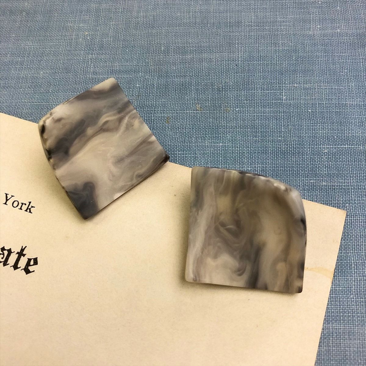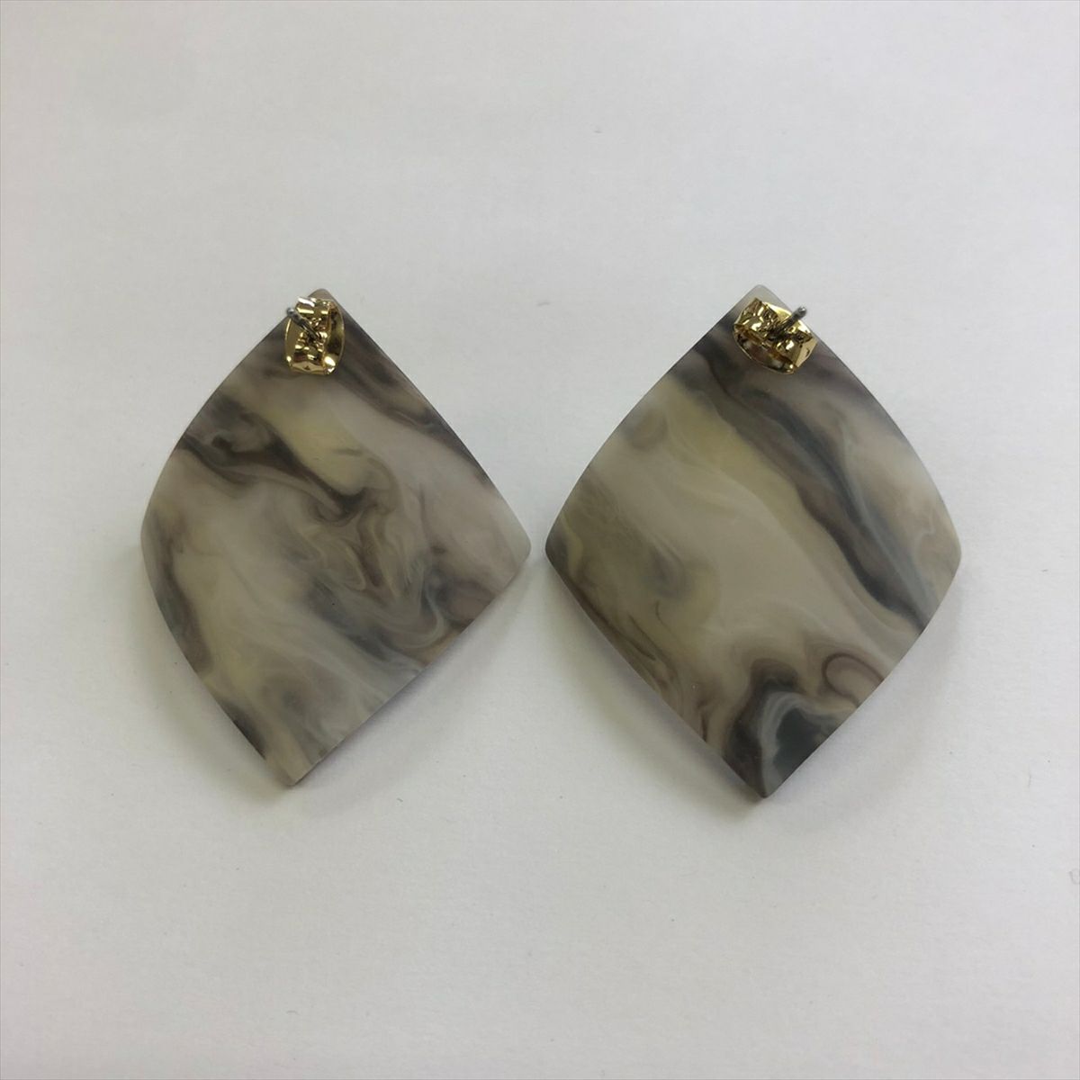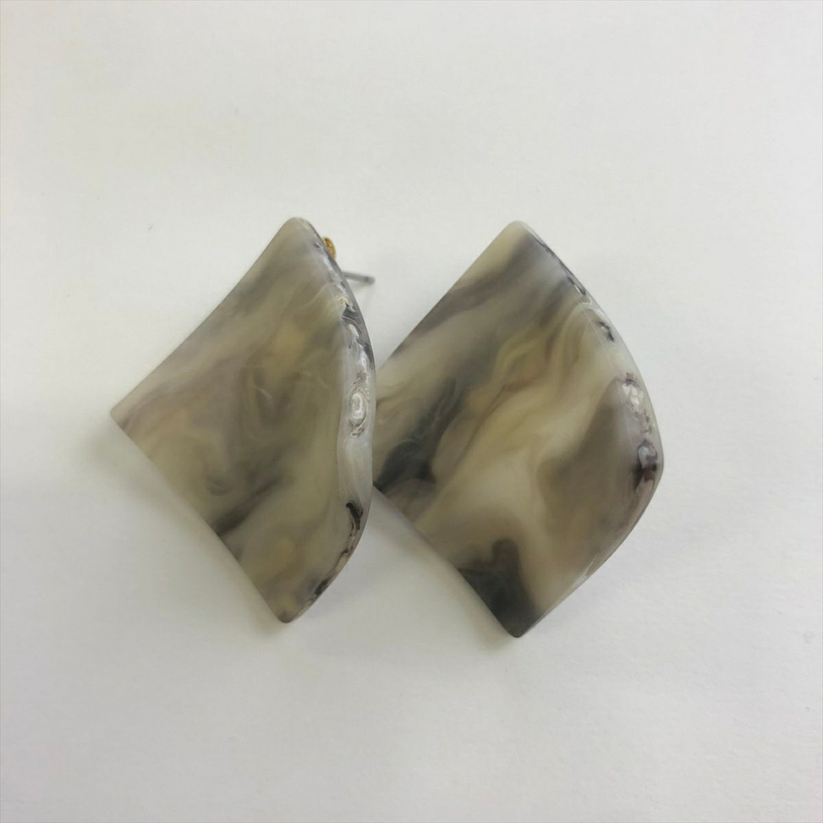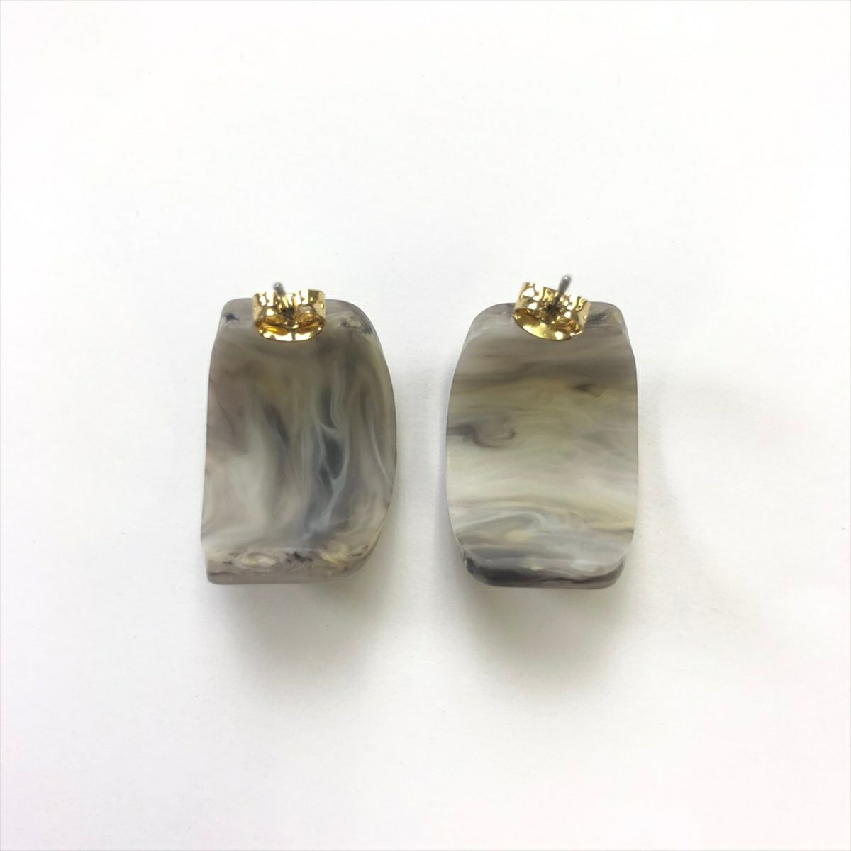 レジン スクエア キャッチピアス ゴールド グレー