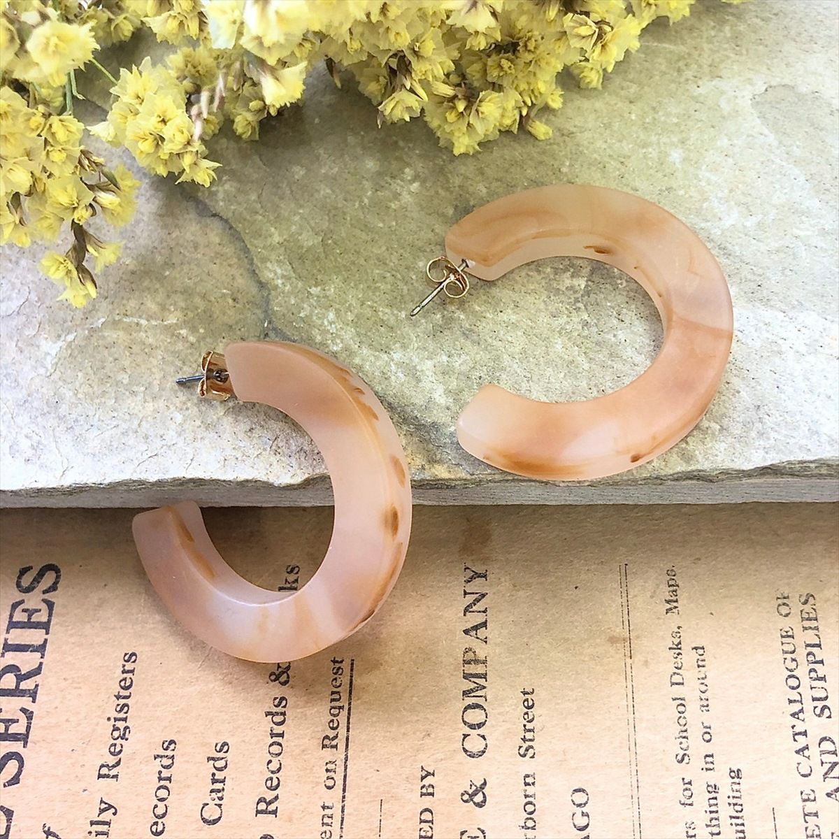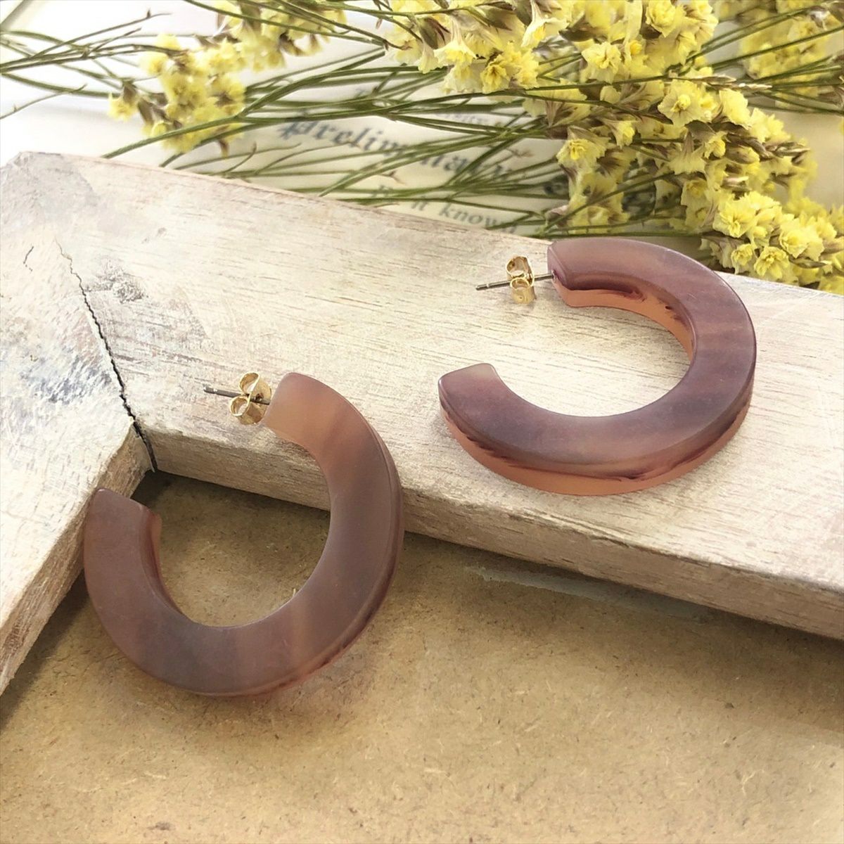 レジン マーブル フープ フープピアス ブラウン