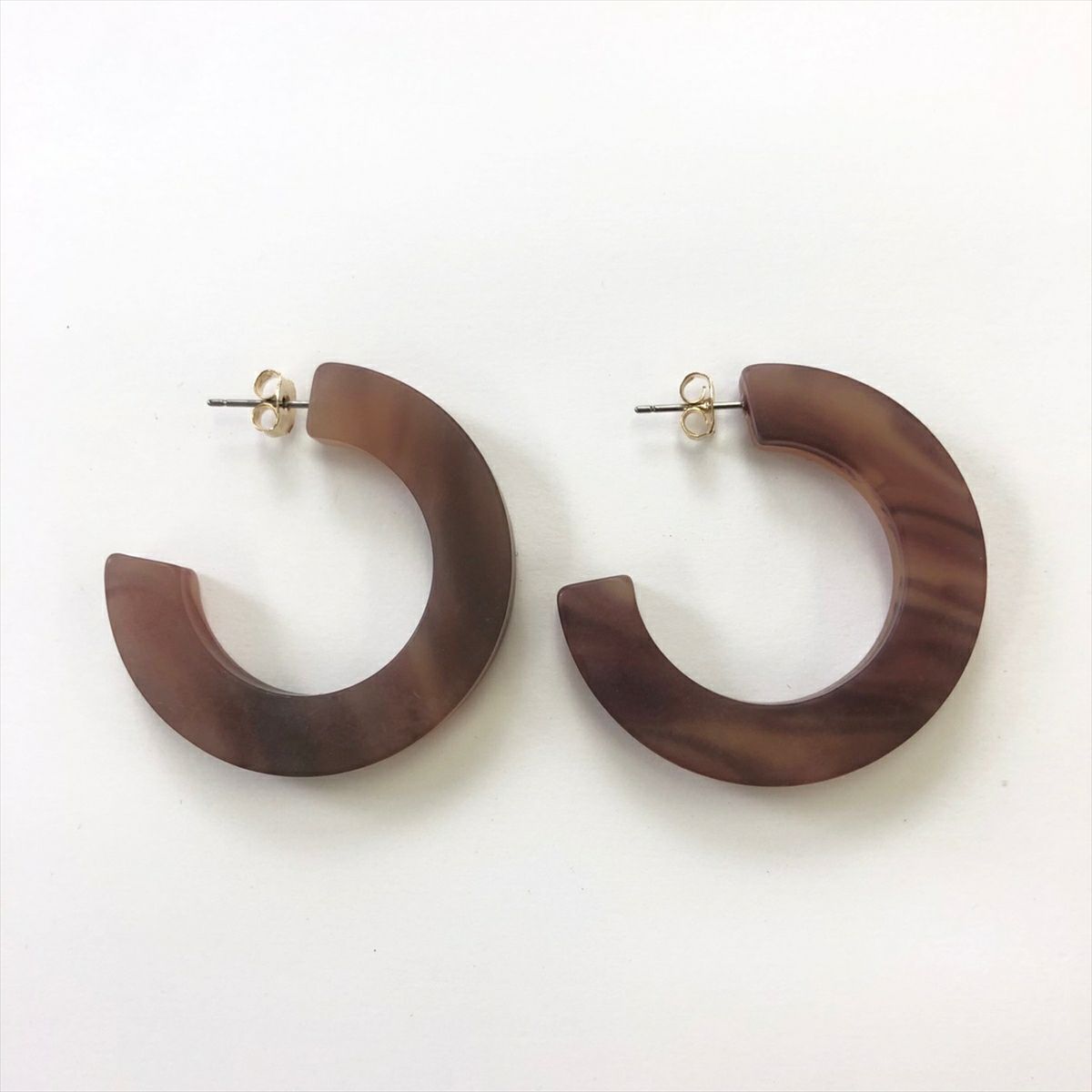 フープ キャッチピアス ブラウン