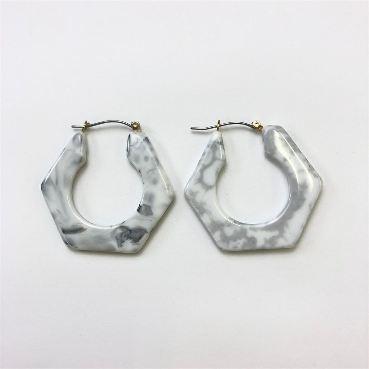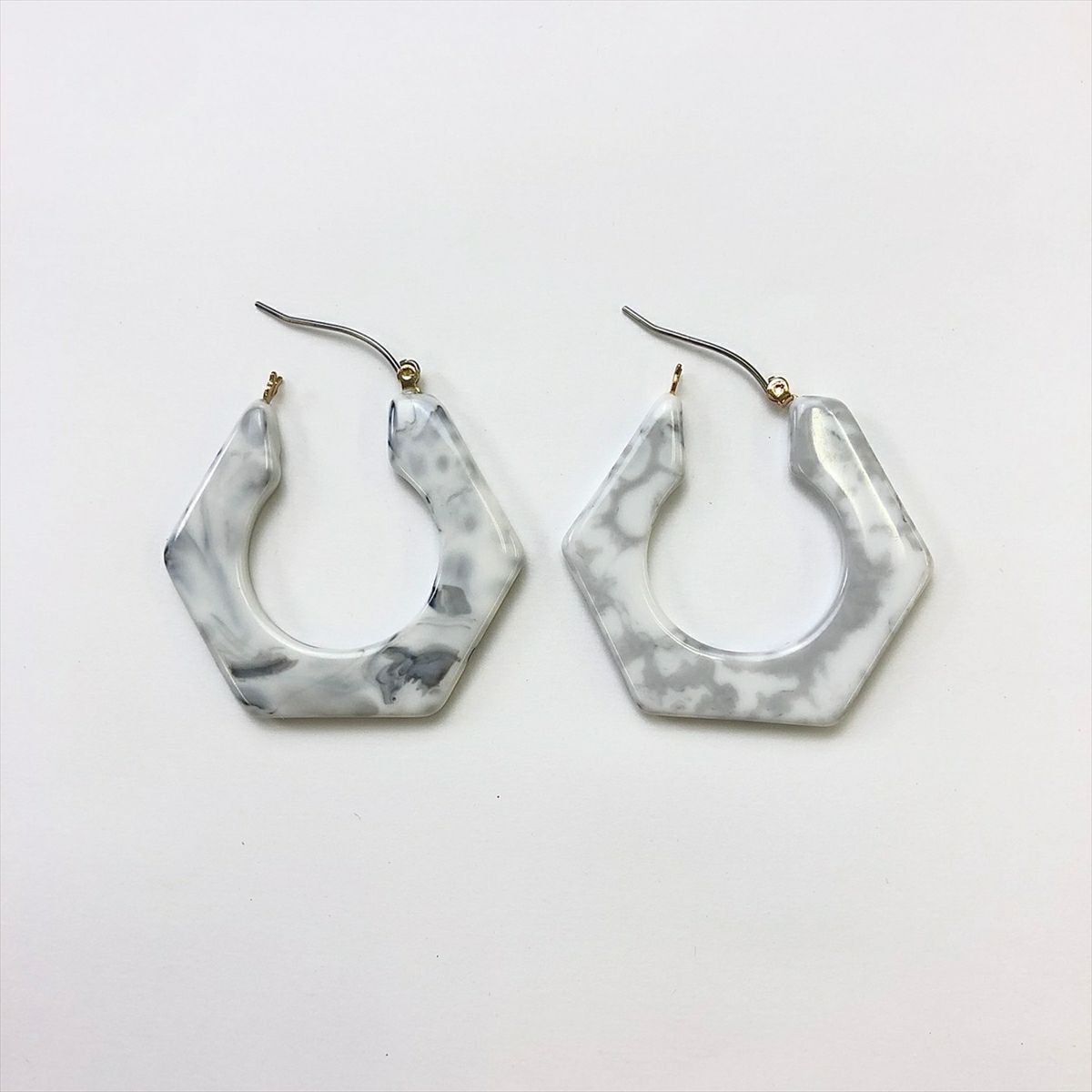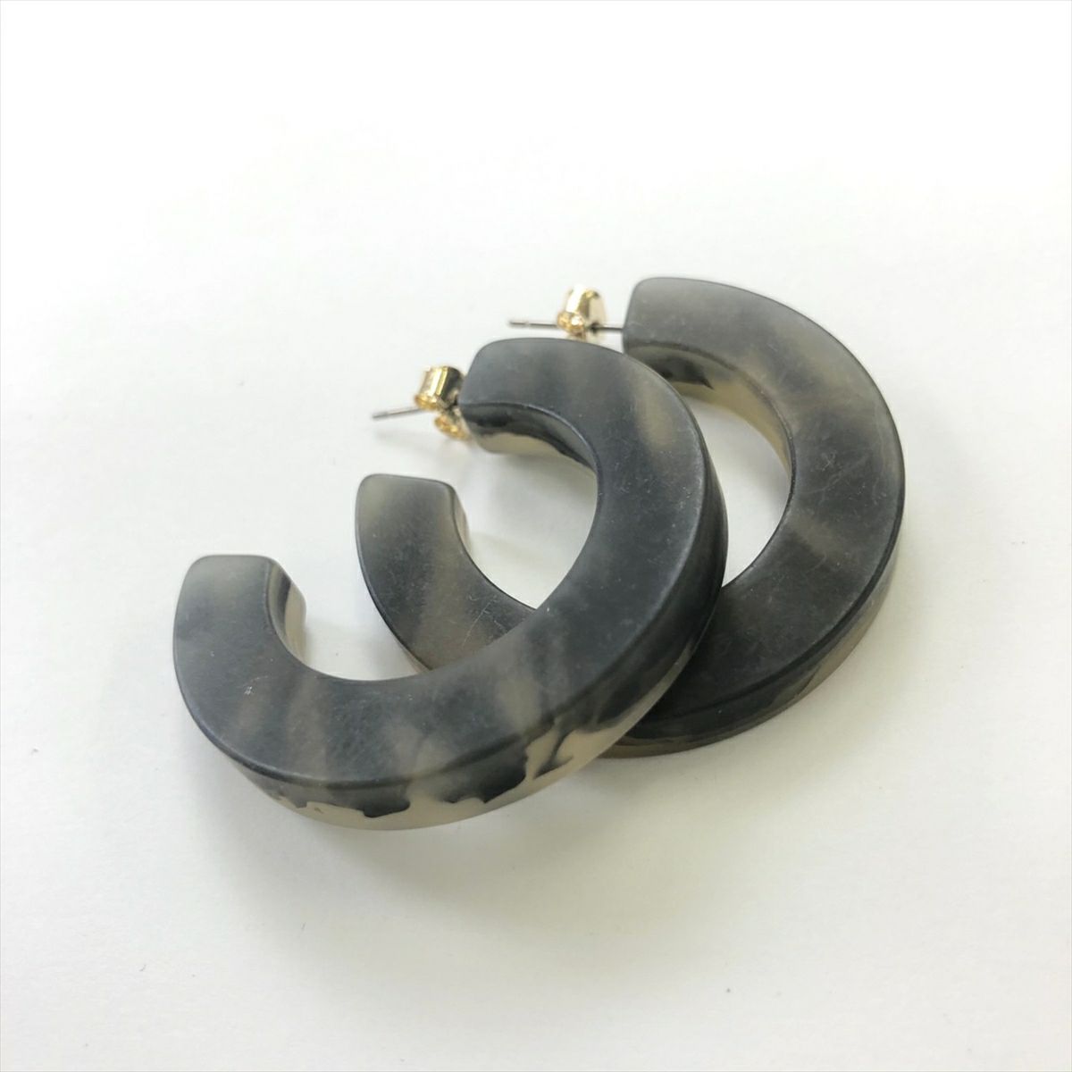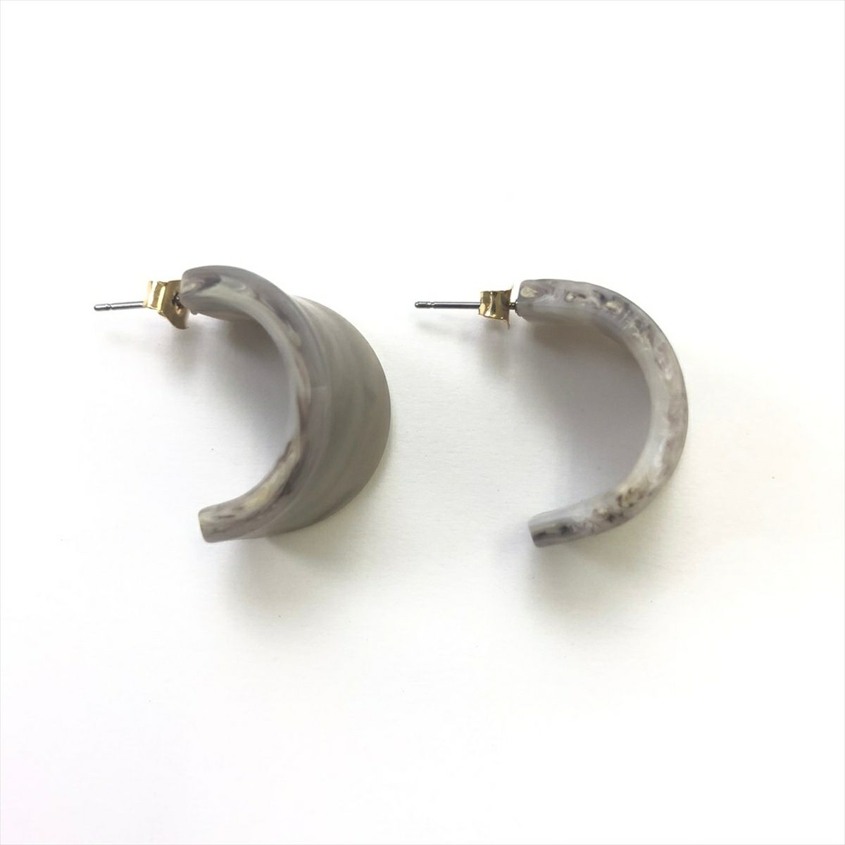 レジン 大理石風 フープ フープピアスグレー