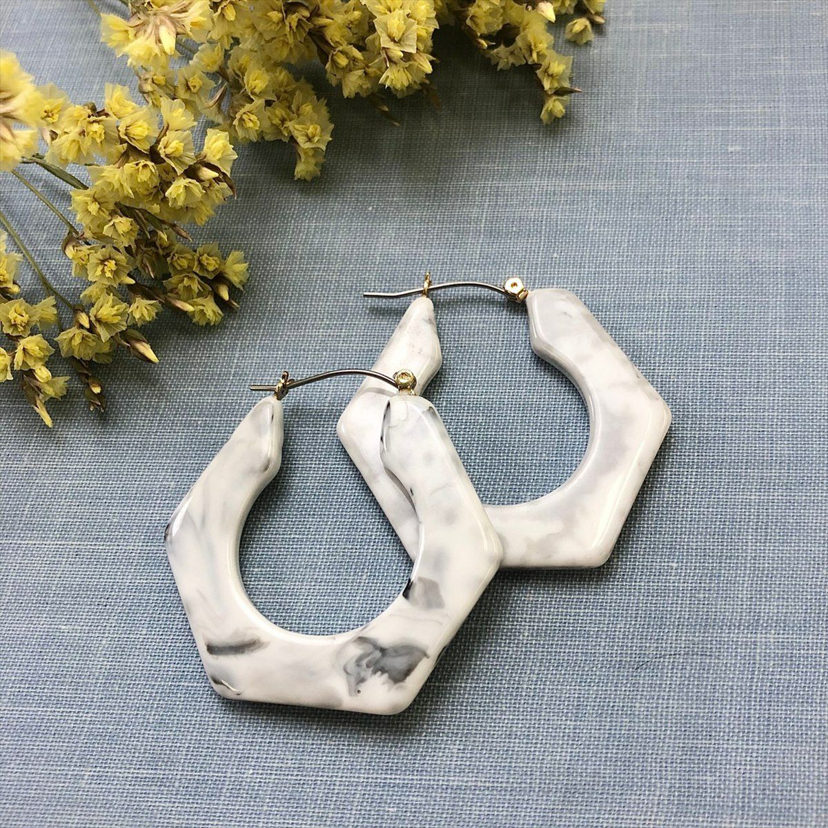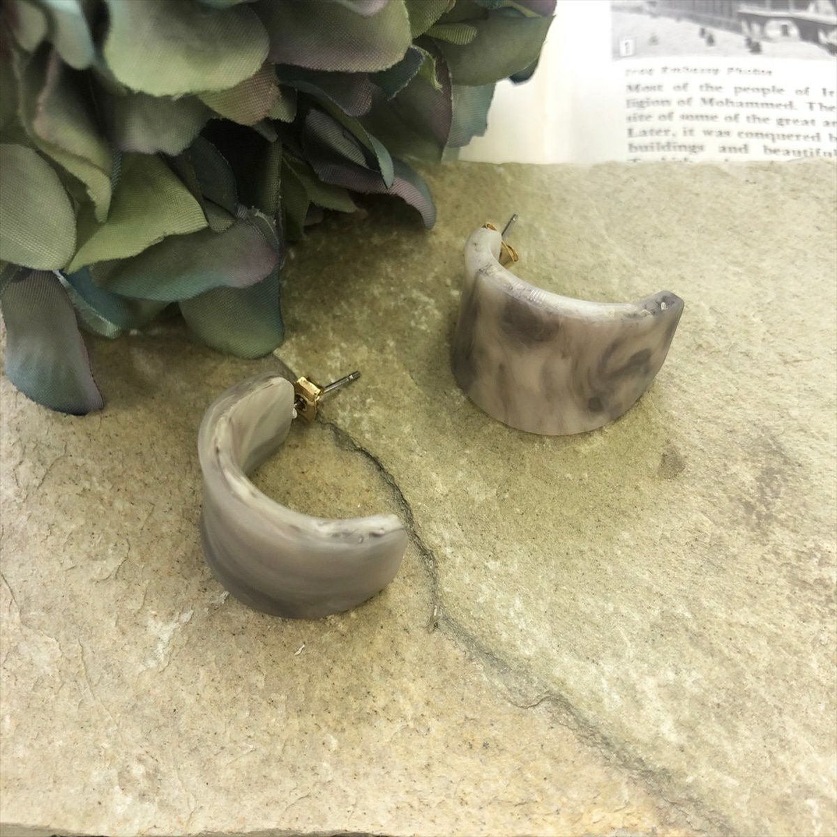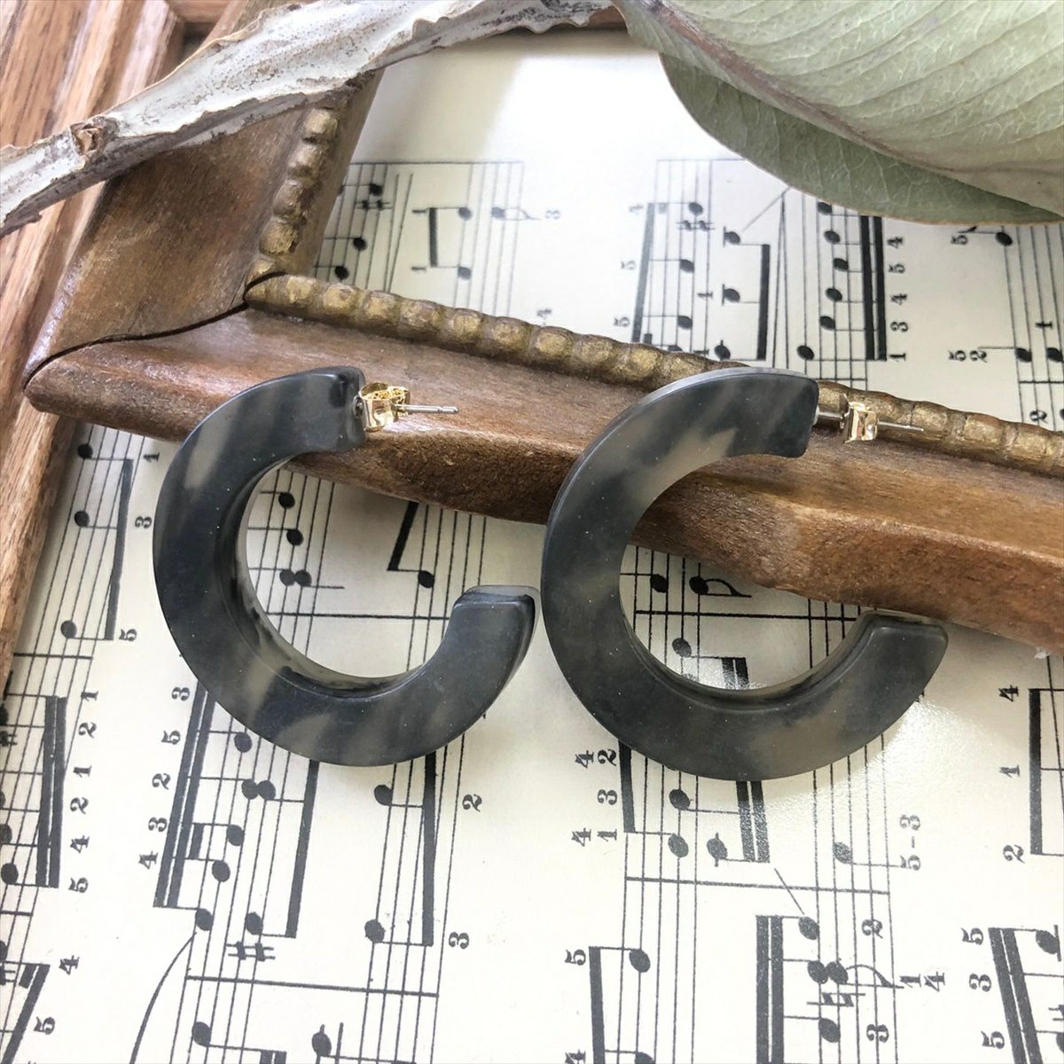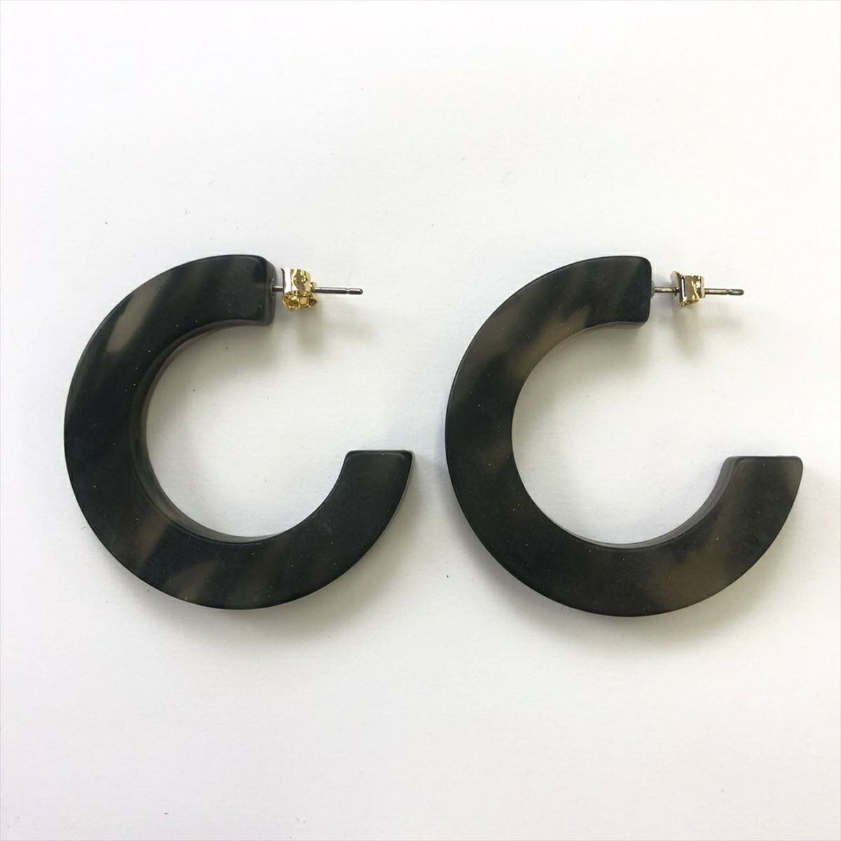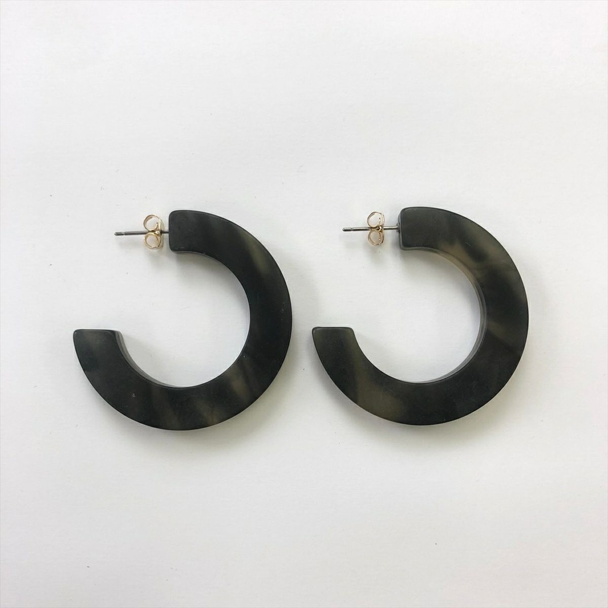 レジン 大理石風 フープ フープピアスグレー